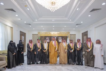 استقبل صاحب السمو الملكي الأمير فيصل بن خالد بن سلطان بن عبدالعزيز، أمير منطقة الحدود الشمالية، في مكتبه اليوم، مدير فرع وزارة الموارد البشرية والتنمية الاجتماعية بالمنطقة خالد الرميخاني، يرافقه أعضاء جمعية "رواسي" للحماية الأسرية، وذلك بمناسبة تأسيس الجمعية في مدينة عرعر.