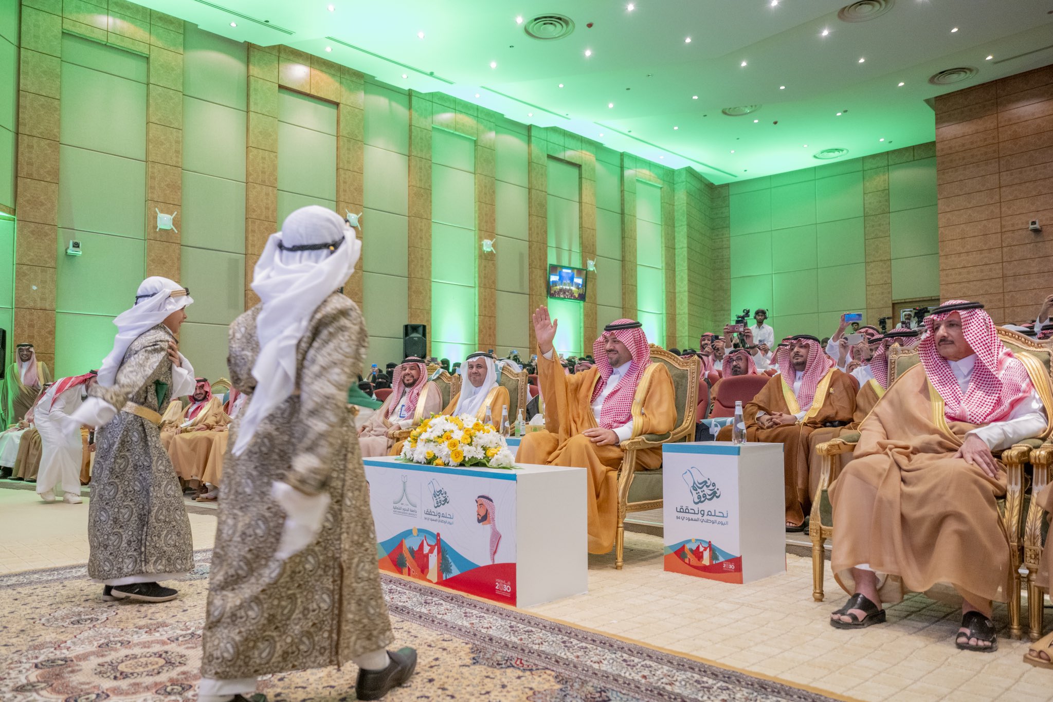 رعى صاحب السمو الملكي الأمير فيصل بن خالد بن سلطان بن عبدالعزيز أمير منطقة الحدود الشمالية اليوم، حفل جامعة الحدود الشمالية، بالتعاون مع الإدارة العامة للتعليم بالمنطقة، بمناسبة اليوم الوطني الـ94.
