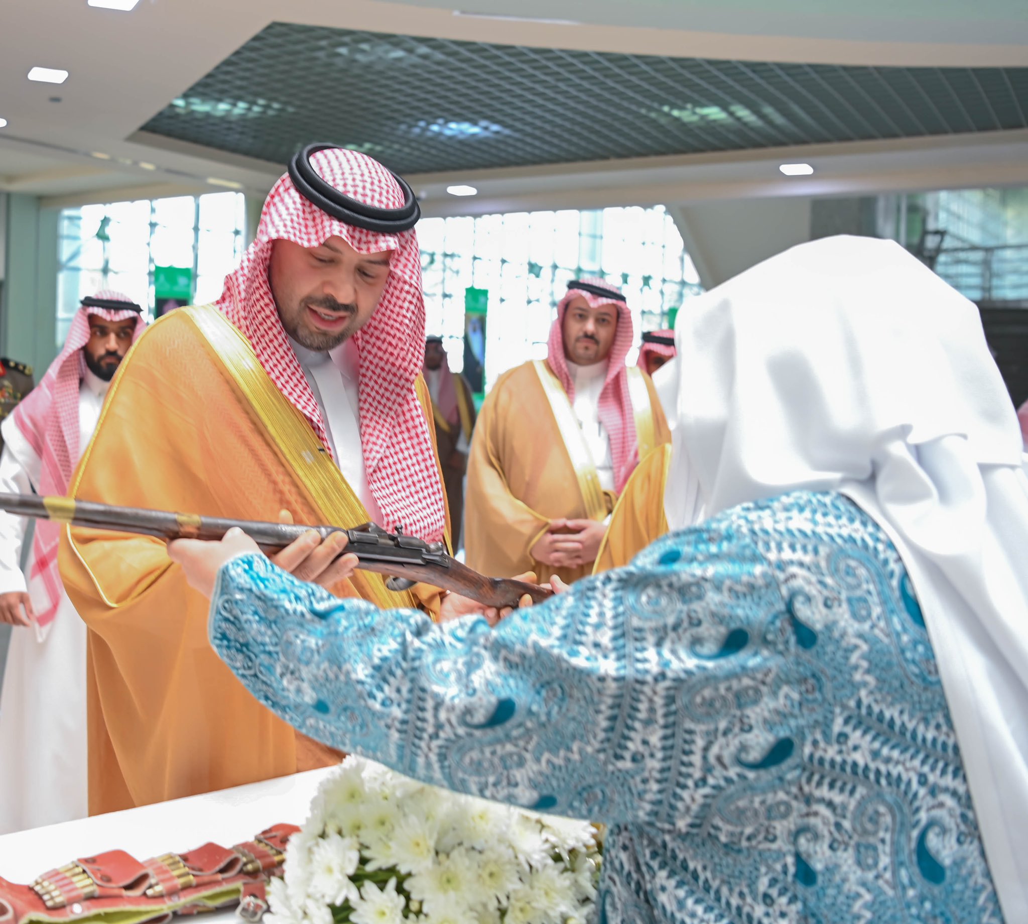 كما وقف سمو أمير الحدود الشمالية على ركن التصوير الضوئي في متحف "حياة السعودية" وشارك في العرضة السعودية المقامة بهذه المناسبة.