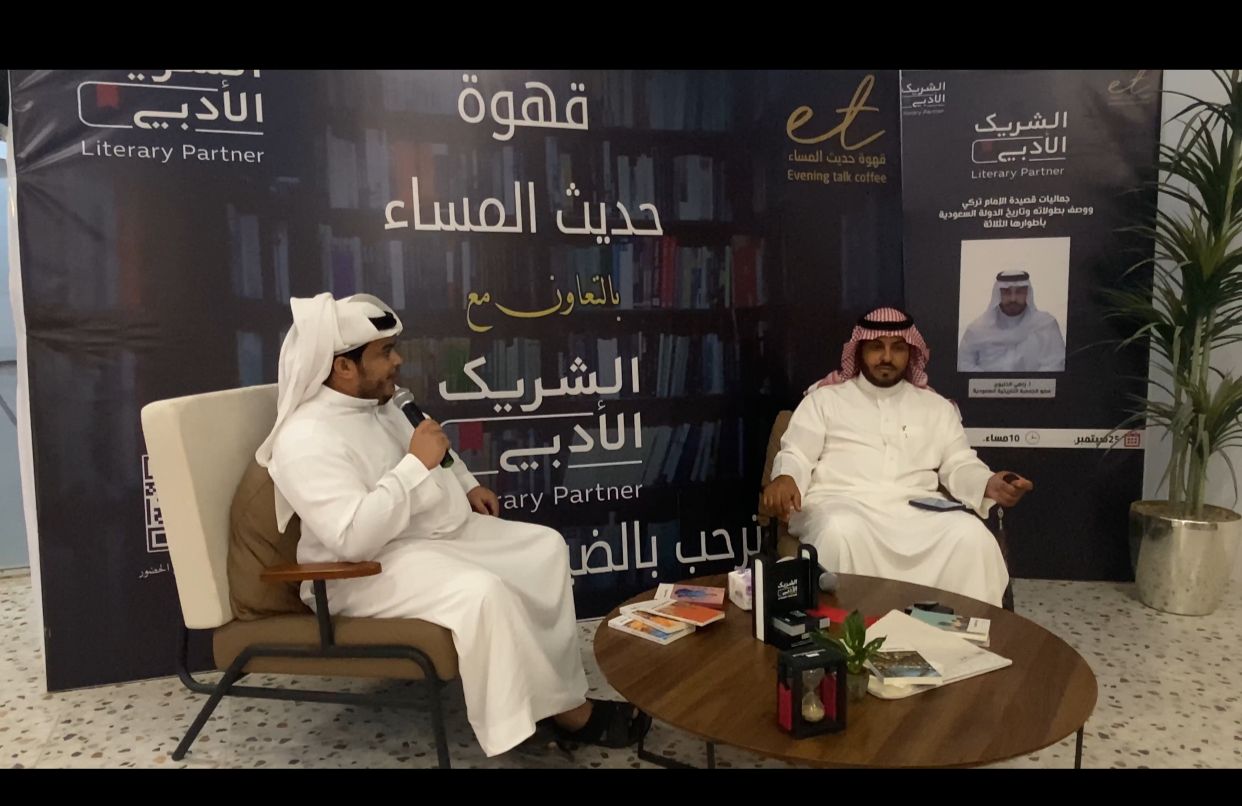أقام الشريك الأدبي بمحافظة العويقيله بالتعاون مع الراعي الرسمي لقهوه حديث المساء أمسيه مقدمها الاعلامي سامي النماصي وضيفها الأستاذ زاهي الخليوي عضو الجمعيه التاريخيه السعوديه وكانت عن جماليات صيدة الإمام تركي وصف بأطوارها الثلاثه .
