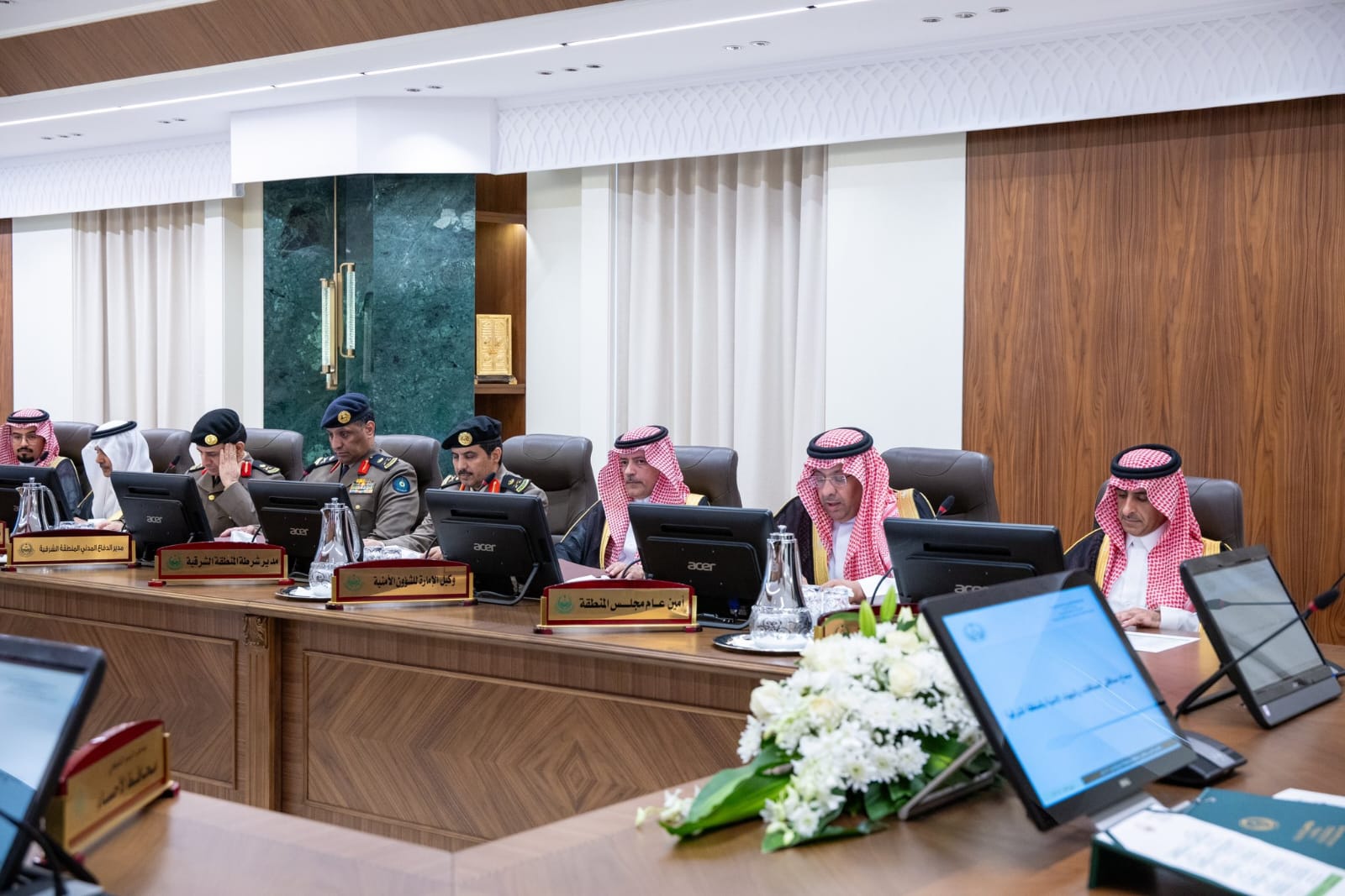 ترأس صاحب السمو الملكي الأمير سعود بن نايف بن عبدالعزيز أمير الشرقية اليوم الثلاثاء اجتماع المحافظين الثاني للعام 1446هـ وذلك بحضور صاحب السمو الملكي الأمير سعود بن بندر بن عبدالعزيز نائب أمير الشرقية ووكيل الإمارة والوكلاء المساعدين ومديري الجهات الأمنية ومحافظي المحافظات وذلك بقاعة الاجتماعات بديوان الإمارة ويناقش الاجتماع مايتعلق بشؤون المنطقة من النواحي الأمنية والتنموية والإدارية واطلع سمو أمير المنطقة الشرقية على ما تم عرضه من الجهات الأمنية المشاركة ومحافظي المحافظات من تقارير حول الأداء التنموي والأمني في المنطقة.