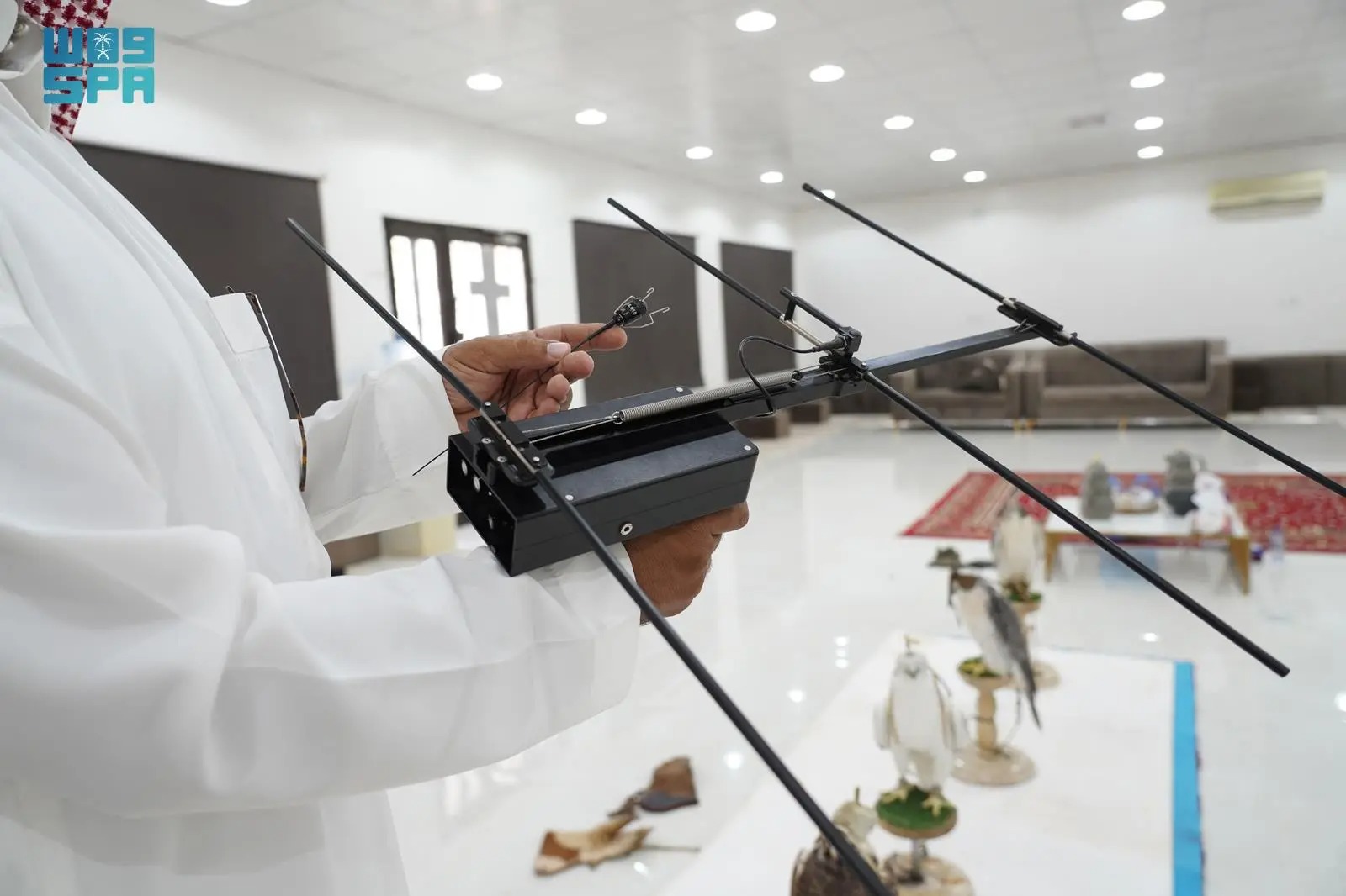 ومن التجهيزات كذلك: تركيب جهاز تتبع تحركات الطير يوضع في مكان محدد من جسم الطير، ومن خلاله تتم متابعة الطير في حالة لم يعد لصاحبه، ويصدر الجهاز صوتًا يأخذ في الارتفاع كلما اُقترب من مكان الطير.