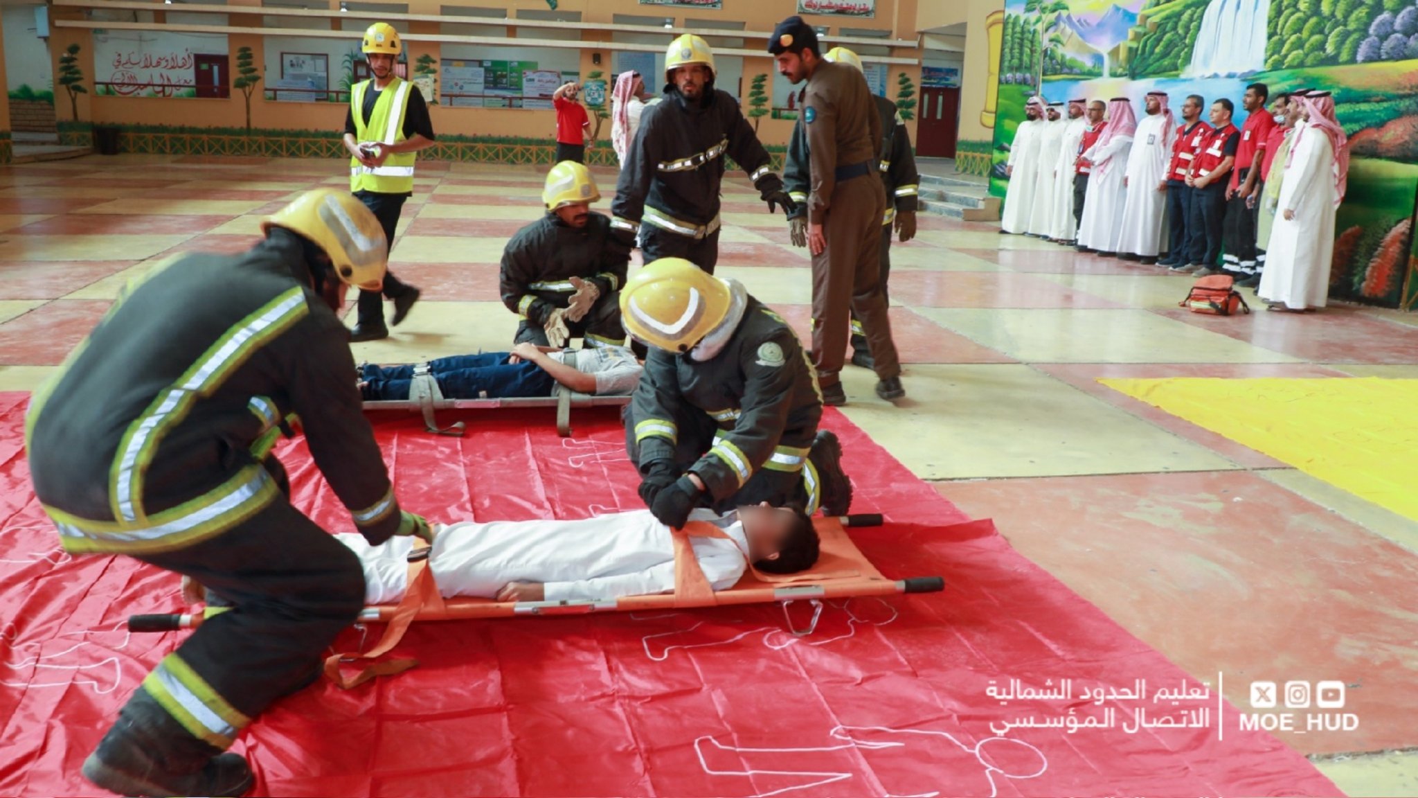 تعليم الحدود الشمالية و فرع هيئة الهلال الأحمر السعودي بالمنطقة ينفذان فرضية ( تسمم غذائي) بمدرسة سعيد بن المسيب المتوسطة؛ لرفع درجة التنسيق والاستجابة لمواجهة الحالات الطارئة.