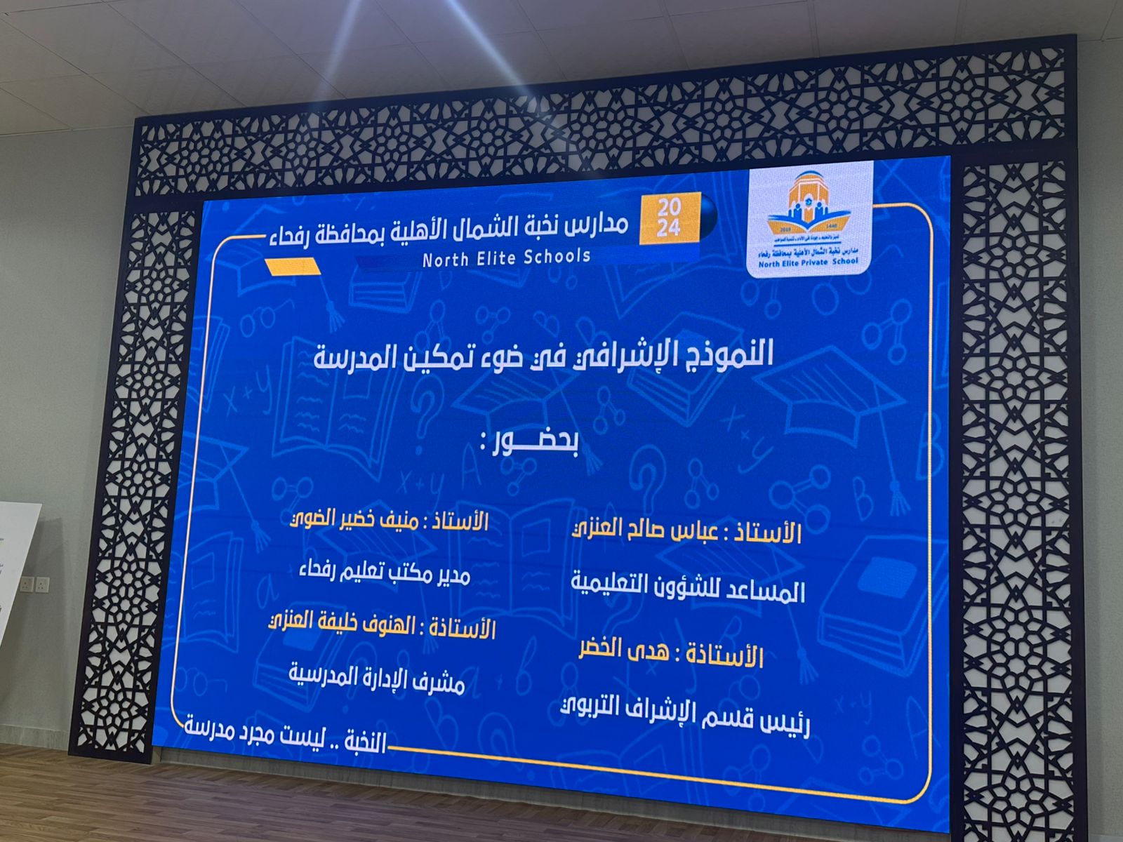 انطلاق لقاء النموذج الإشراف في ظل تمكين المدرسة وذلك على مسرح مدارس نخبة الشمال الأهلية برفحاء بحضور مشرفي ومشرفات قطاع رفحاء التعليمي وتم التطرق خلال اللقاء إلى التعريف بالنموذج و استعراض أهمية تطبيق النموذج الذي يهدف إلى تمكين المدارس من قيادة عمليات التحسين والتطوير ، انطلاقًا من نتائج التقويم المدرسي، وإعداد خطة التحسين والتطوير بناءً على تلك النتائج وإيجاد بيئة عمل حيوية وفاعلة وتفعيل مجتمعات التعلم المهنية ودعم أدوارها.