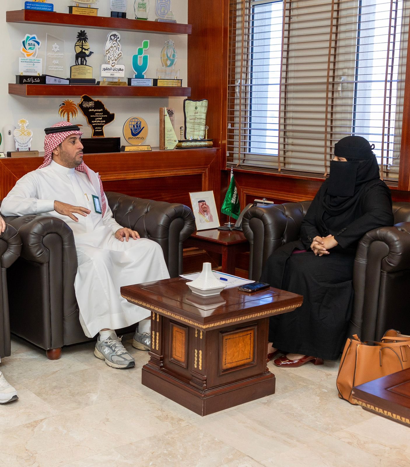 مدير عام فرع وزارة البيئة والمياه والزراعة بمنطقة الحدود الشمالية المهندس بندر بن صالح الهديه يستقبل المدير التنفيذي لجمعية طريف الخيرية عبير بن عياد الرويلي .