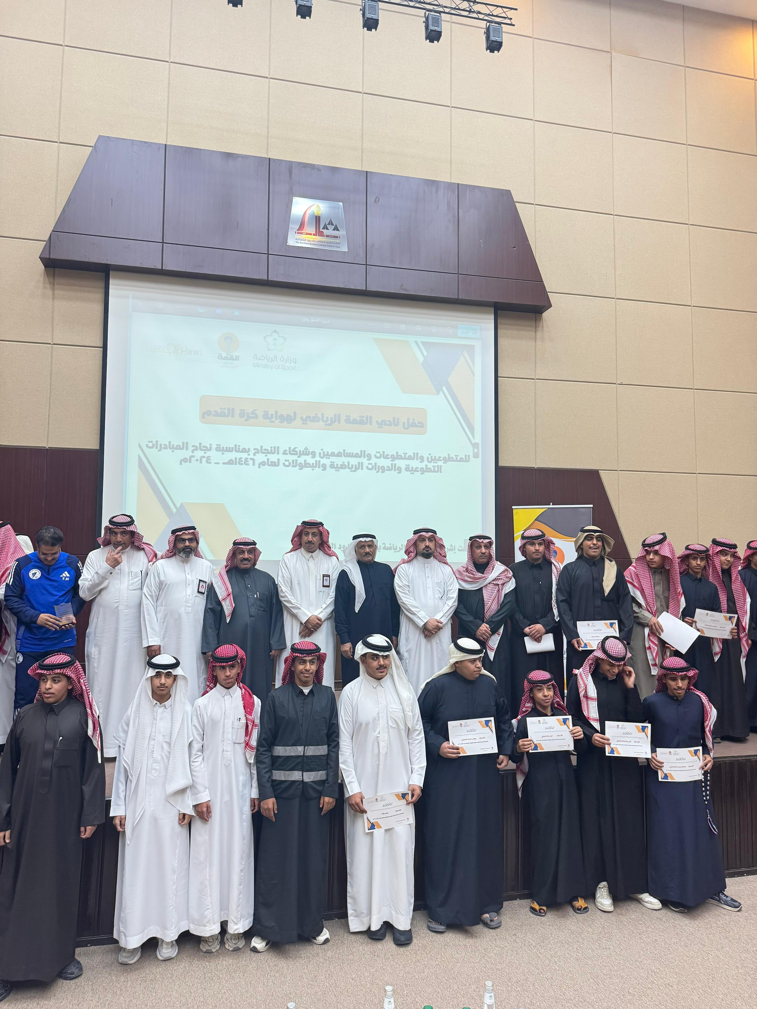 بحضور مدير فرع وزارة الرياضة بمنطقه الحدود الشمالية ومساعده ، ومدير عام الجمعيات الأهلية والمؤسسات الرياضية بوزارة الرياضة نظمت إدارة نادي القمة الرياضي لهواية كرة القدم بعرعر حفل تكريم المساهمين والمتطوعين والفرق الرياضية من الرجال والنساء والداعمين لبرامج النادي خلال الفترة الماضية .