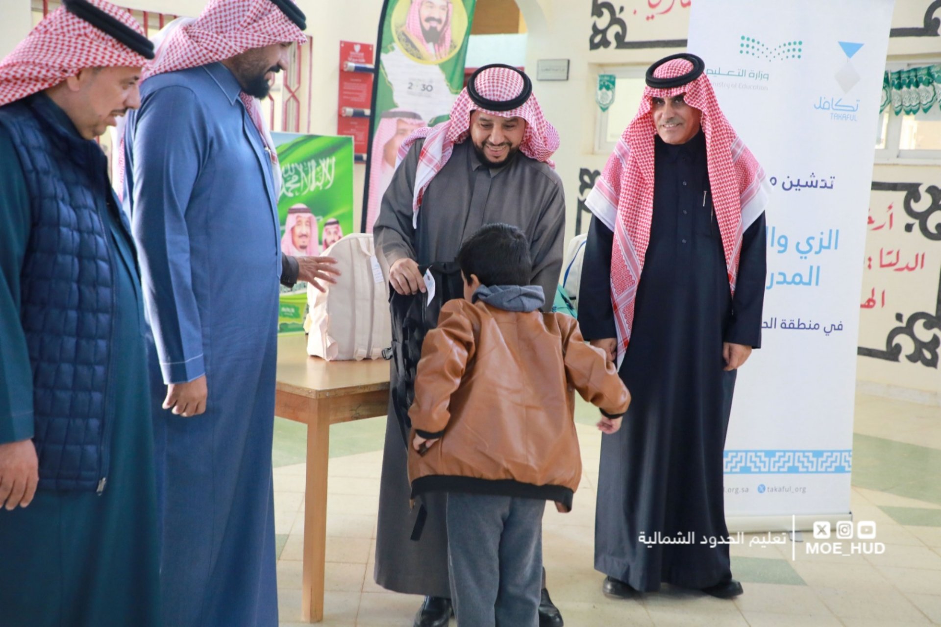 دشن مدير عام تعليم الحدود الشمالية برنامج "الزي واللباس المدرسي" في نسخته التاسعة بالتعاون مع مؤسسة تكافل الخيرية، بمدرسة ابن سعيّد الابتدائية.
