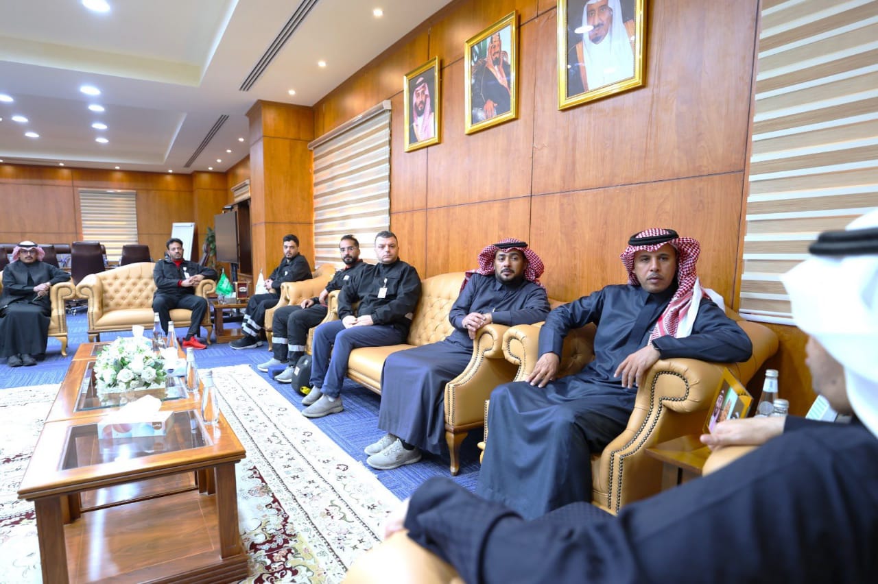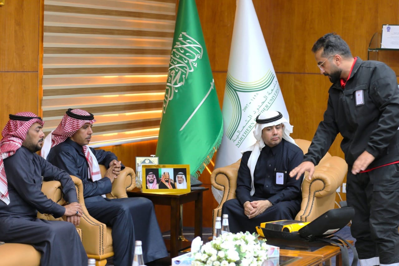 استقبل رئيس جامعة الحدود الشمالية اليوم أ. د. أحمد بن علي الرميح مدير عام هيئة الهلال الأحمر السعودي بالمنطقة الأستاذ/ مساعد غالي العنزي وقيادات الفرع ، بهدف دعم تكامل الجهود والتعاون بين الهيئة والجامعة بالمنطقة