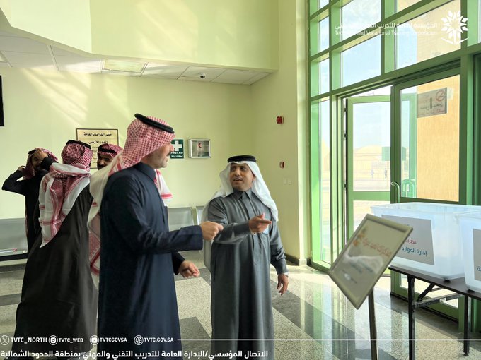 مدير عام الإدارة العامة للتدريب التقني والمهني بالحدود الشمالية م. حسن بن علي السليم يقوم بزيارة تفقدية للكلية التقنية برفحاء لمتابعة سير الإختبارات النهائية للفصل التدريبي الأول لعام 1446هـ ، متمنياً لأبناءه المتدربين التوفيق والنجاح