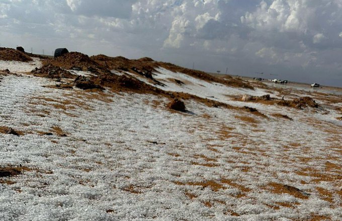 واكتست بعض المناطق البرية، بالرداء الأبيض نتيجة التساقط الكثيف للبرد.