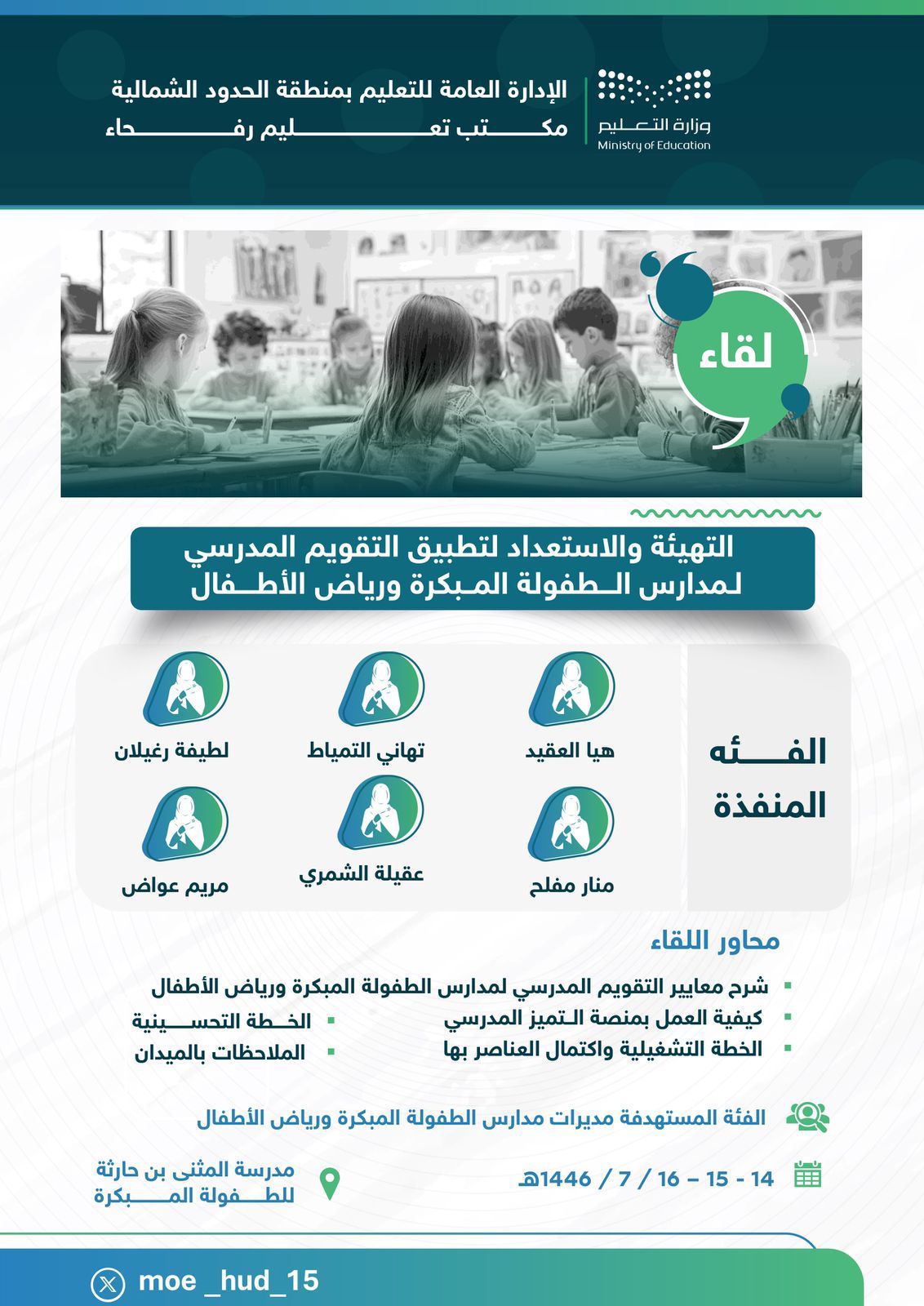 نفذ تعليم رفحاء (قسم الطفولة المبكرة) دورة في التهيئة والاستعداد لتطبيق التقويم المدرسي لمدارس الطفولة المبكرة ورياض الأطفال