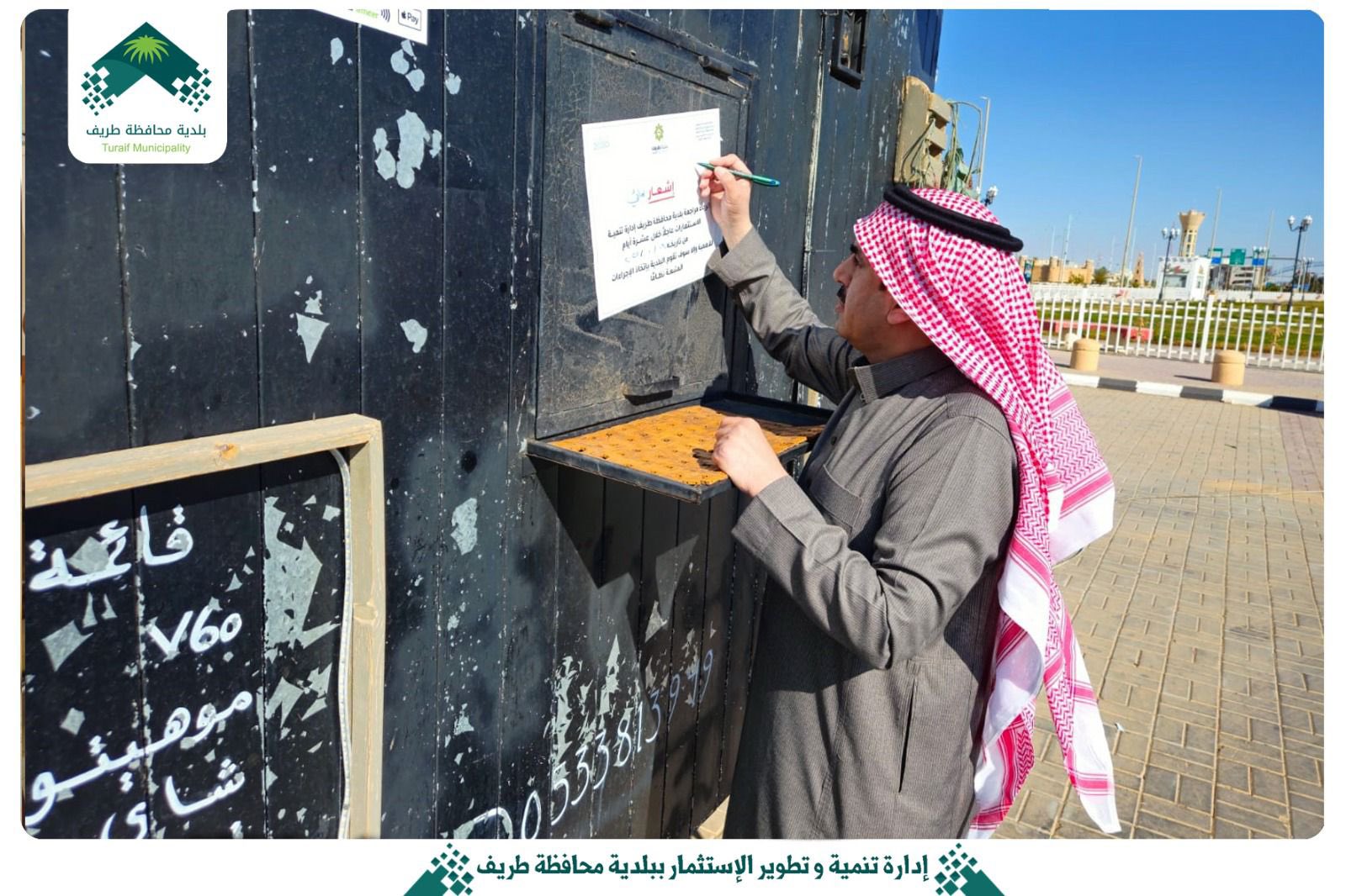 كثفت بلدية محافظة طريف ممثلة بإدارة تطوير الاستثمار جولاتها الميدانية علي المواقع الاستثمارية لمتابعة اشتراطات العقود وانذار المواقع لديها مستحقات متأخرة بالسداد وتهيب بالمستثمرين المتعثرين سرعة السداد قبل ان يتم تطبيق الانظمة المتبعة .