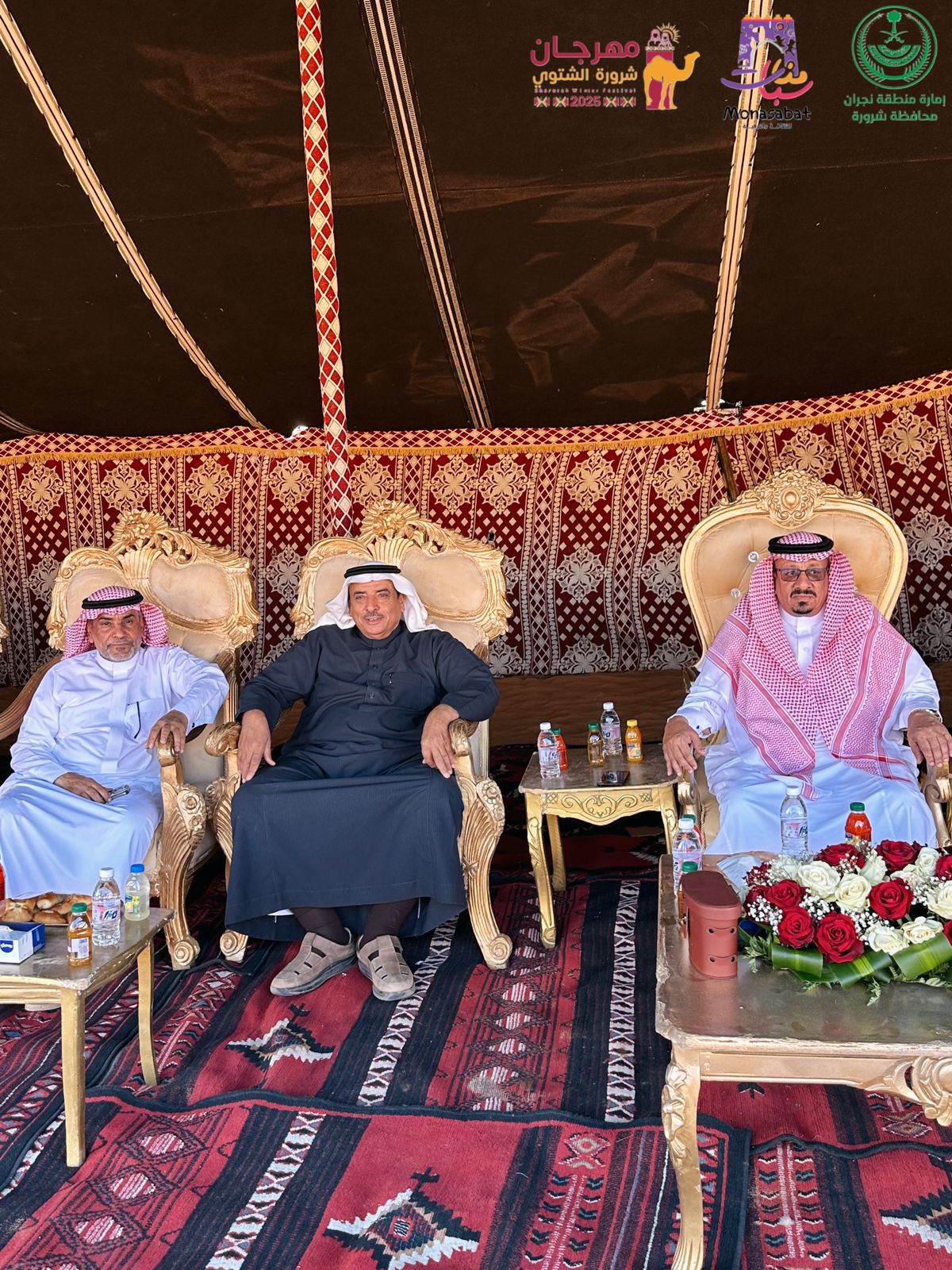 في زياره تفقدية لمهرجان شرورة الشتوي زار محافظ شرورة موفق بن عبداَلهادي العنزي مرافق المخيمات للعديد من المواطنين المشاركين من مختلف القبائل والذي يجسد الحمية الوطنية بين الشعب السعودي