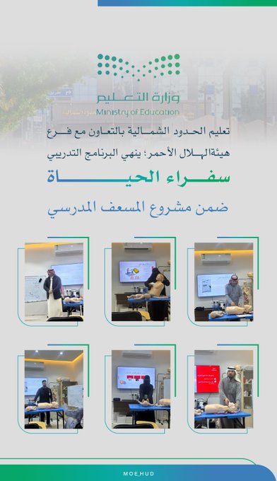 اختتمت إدارة تعليم منطقة الحدود الشمالية، بالتعاون مع فرع هيئة الهلال الأحمر السعودي بالمنطقة، البرنامج التدريبي "سفراء الحياة"، الذي يأتي ضمن مشروع المسعف المدرسي. ويهدف البرنامج إلى تدريب الطلاب والكوادر التعليمية على المهارات الأساسية في الإسعافات الأولية، بما يمكنهم من التعامل مع الحالات الطارئة بشكل فعّال.