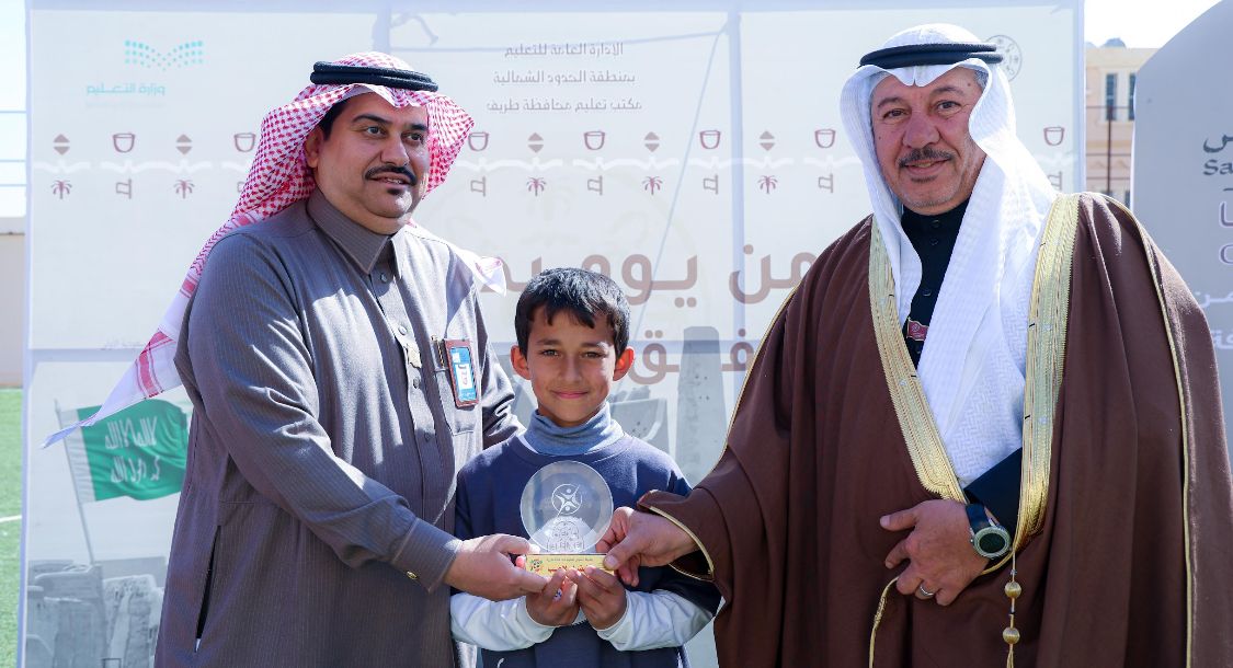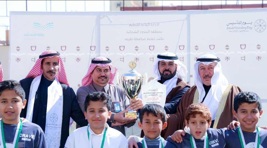 بحضور سعادة القائم بأعمال محافظ طريف الاستاذ خالد دخيل الرشيدان وسعادة مدير مكتب التعليم بطريف الاستاذ ماجد حمود الرويلي وجمع كبير من مدراء ومديرات المدارس ومعلمي ومعلمات المدارس اقيمت فعاليات الاحتفال بيوم التأسيس للمملكة العربية السعودية في مدرسة ابو موسى الاشعري الابتدائية حيث استهل الحفل بقراءة آيات من الذكر الحكيم ثم توالت فقرات الحفل التي اشتملت على الشعر والالقاء من قبل المشاركين في الحفل.