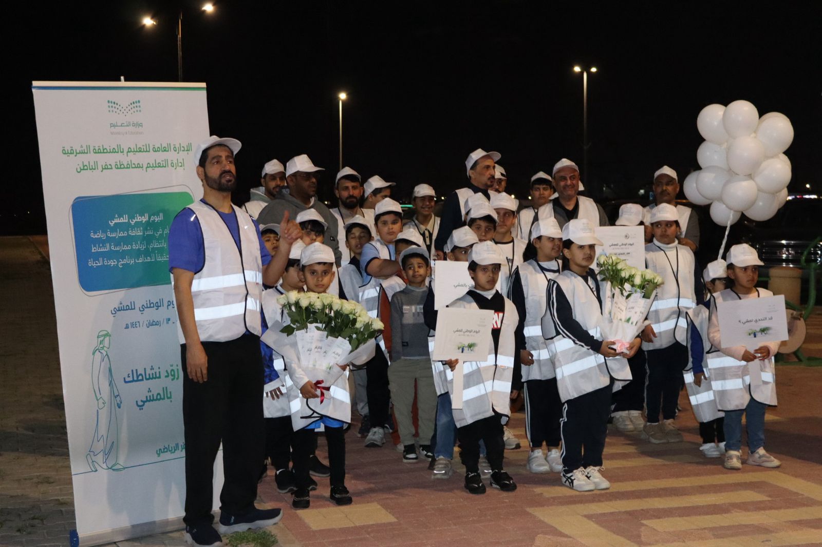 فعلت إدارة تعليم حفرالباطن فعالية "قد التحدي تمشي" تزامناً مع اليوم الوطني للمشي بمشاركة القيادات التعليمية والمدارس ويأتي ذلك للمساهمة في نشر ثقافة ممارسة رياضة المشي في المجتمع وتحقيقاً لأهداف برنامج جودة الحياة ، حيث تم في البداية شرح لأهمية المشي وطرق المشي الصحيحة والتعريف الفوائد الصحية ثم انطلقت مسيرة المشي بحضور الطلاب والطالبات .