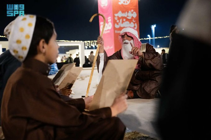 يشهد "ركن الراوي" في فعالية "قمرة" بمدينة بمنطقة الحدود الشمالية إقبالًا كبيرًا من الزوار يجتمعون حول الحكواتي لسماع القصص الشعبية القديمة التي تعكس تاريخ المنطقة وسط أجواء رمضانية دافئة.