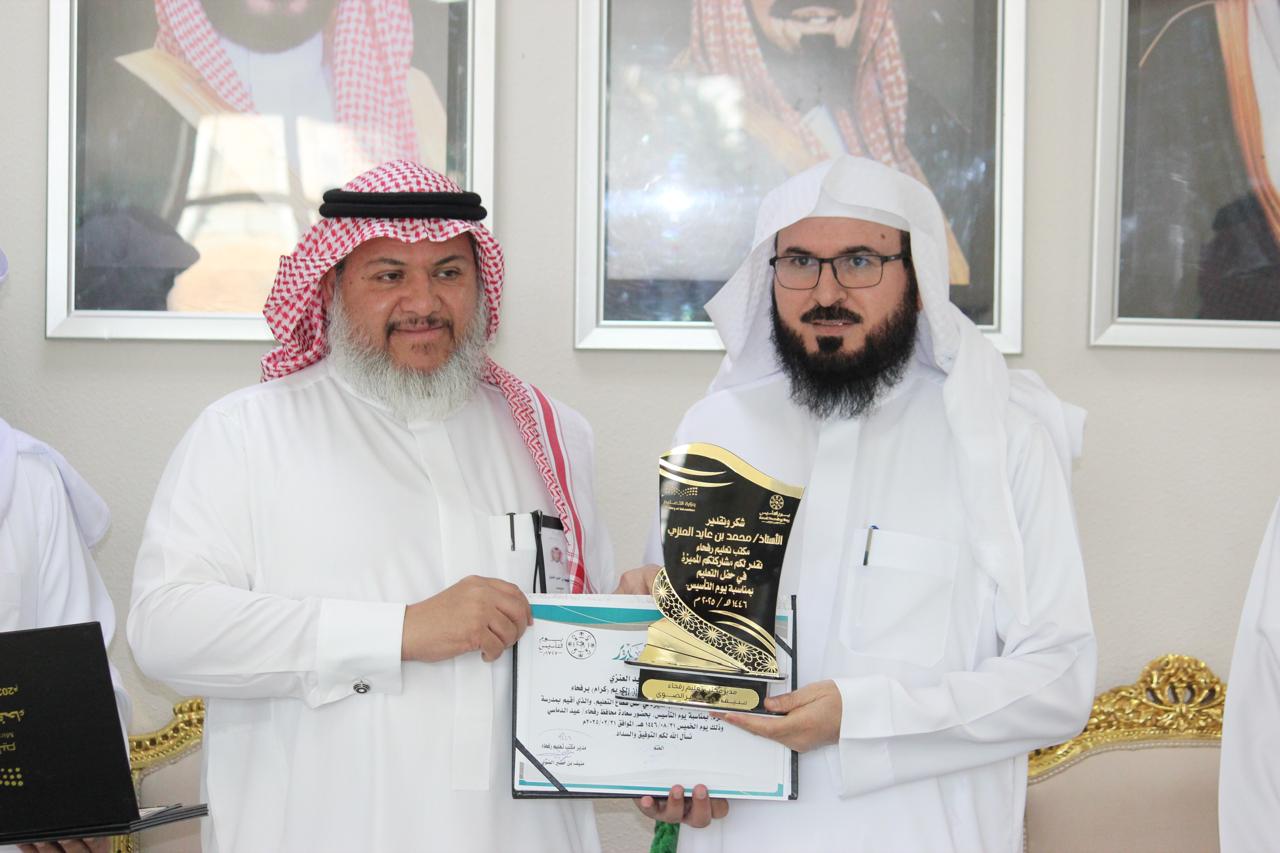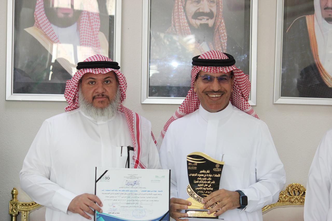 وفي لفتة وفاء، تم تكريم العامل مسعود عبدالله، الذي أمضى 22 عاماً في خدمة المكتب، وذلك من خلال تقديم هدية تعكس التراث السعودي الأصيل، إلى جانب شهادة شكر تقديراً لإخلاصه وجهوده المستمرة. كما تم تقديم مبلغ مالي تكريماً له على سنوات العمل التي بذلها في خدمة المجتمع التربوي.