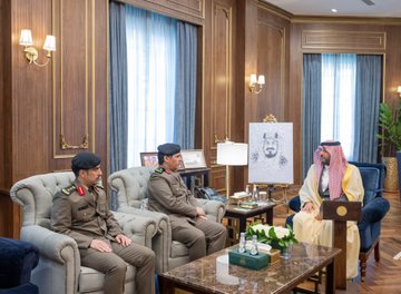 جاء ذلك خلال استقبال سموه اليوم في مكتبه، مساعد مدير شرطة المنطقة اللواء ماجد بن برجس العتيبي، ومدير إدارة المرور العقيد نايف بن فؤاد الحربي.