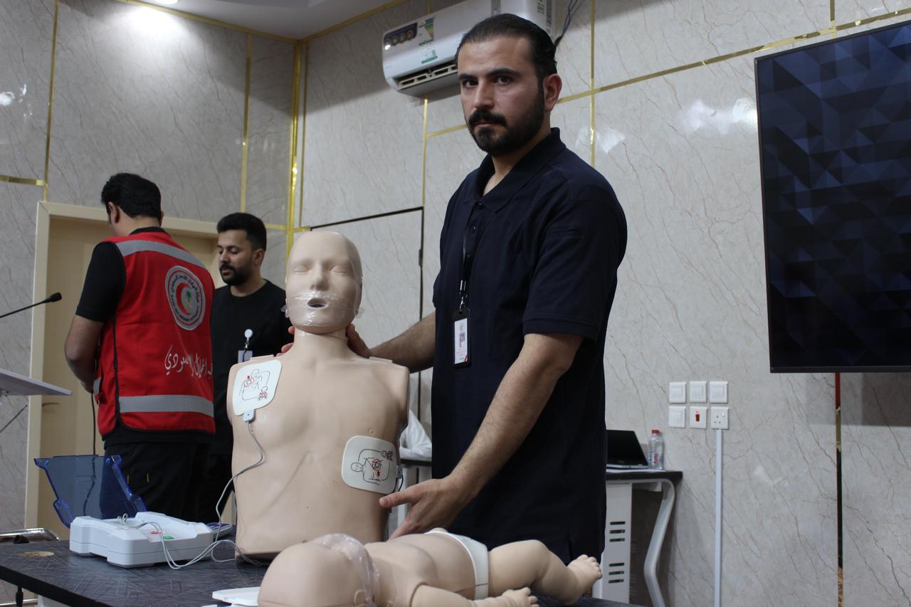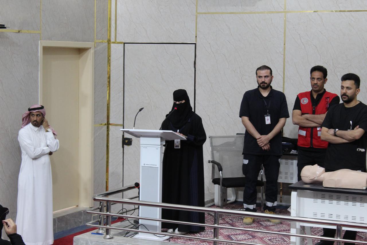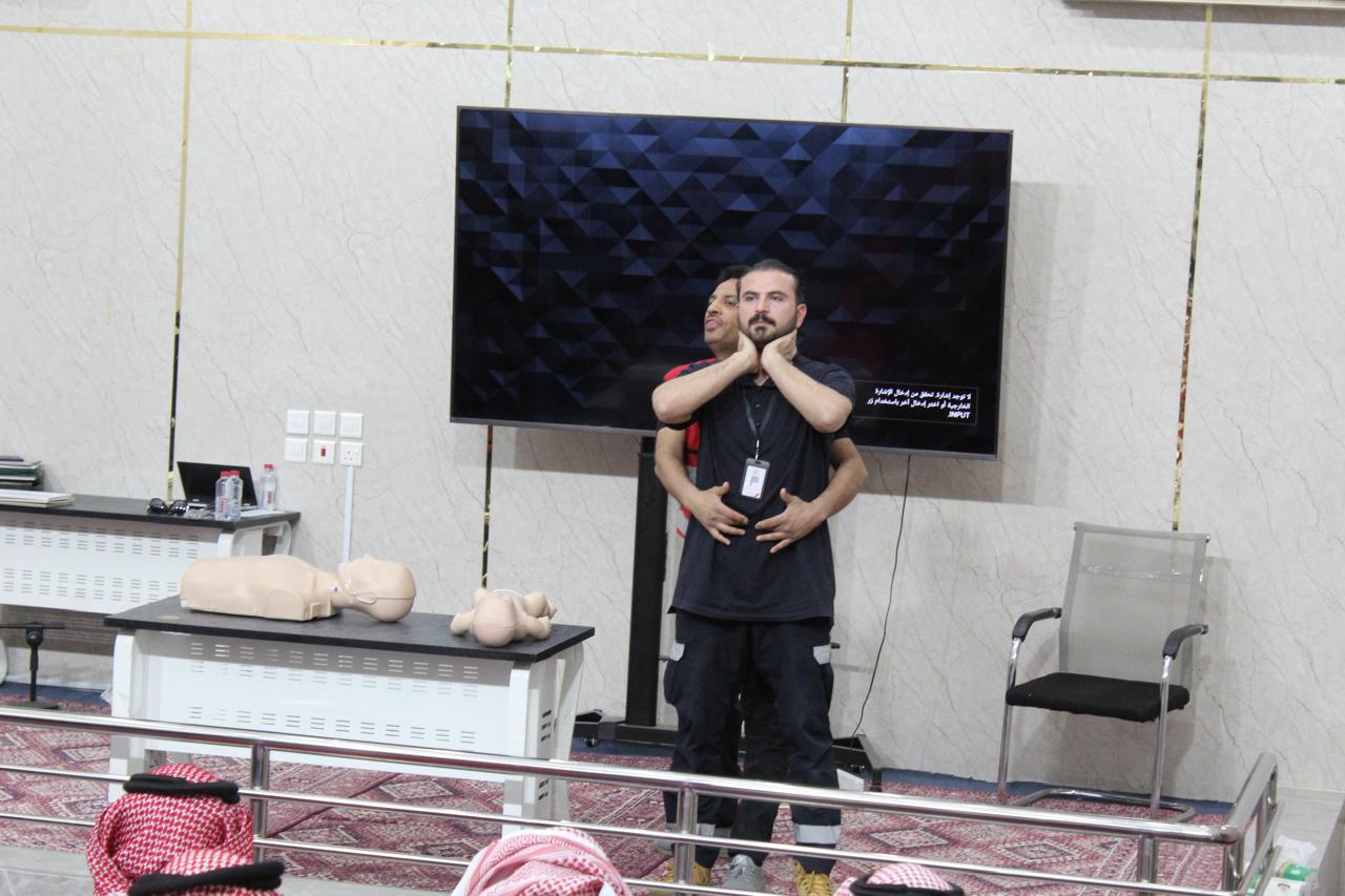 كما تحدث ايضاً المدرب رخيص بن غانم الشمري عن كيفية استخدام جهاز الصدمات الكهربية لتوقف القلب وكيفيته وطرق استخدامه وكيفية اذا اختنق مجرى التنفس لدى الكبار والرضع والطرق المستخدمه في هذه الحالات