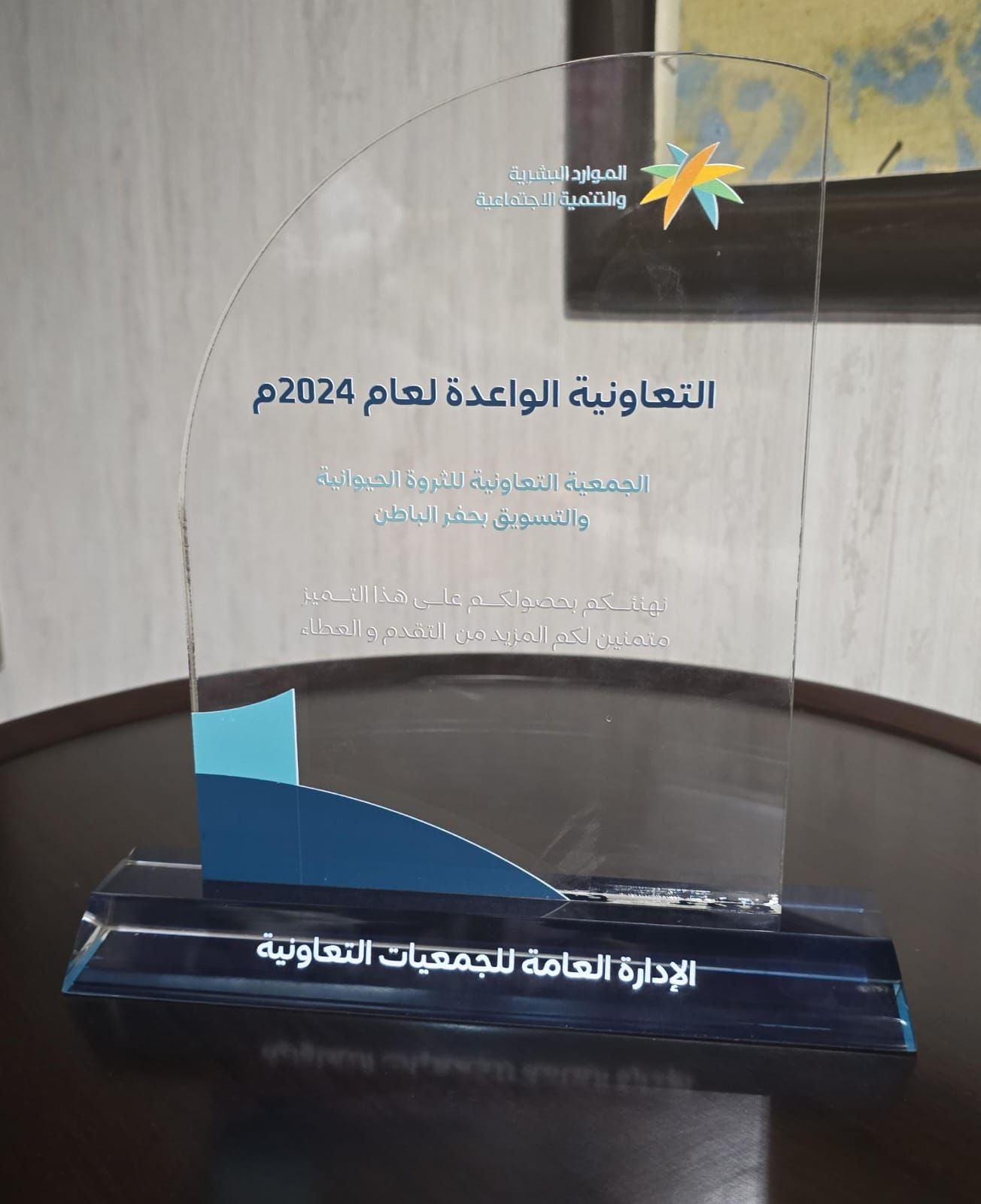في لحظة استثنائية تجسّد فخر الإنجاز الوطني وروح العمل التعاوني، تسلّمت الجمعية التعاونية للثروة الحيوانية ولتسويق بمحافظة حفر الباطن اليوم الثلاثاء 22-4-2025 جائزة التعاونية الواعدة لعام 2024، خلال الحفل السنوي لقطاع التعاون، والذي أُقيم في مقر وزارة الموارد البشرية والتنمية الاجتماعية بمدينة الرياض، برعاية كريمة من معالي الوزير.