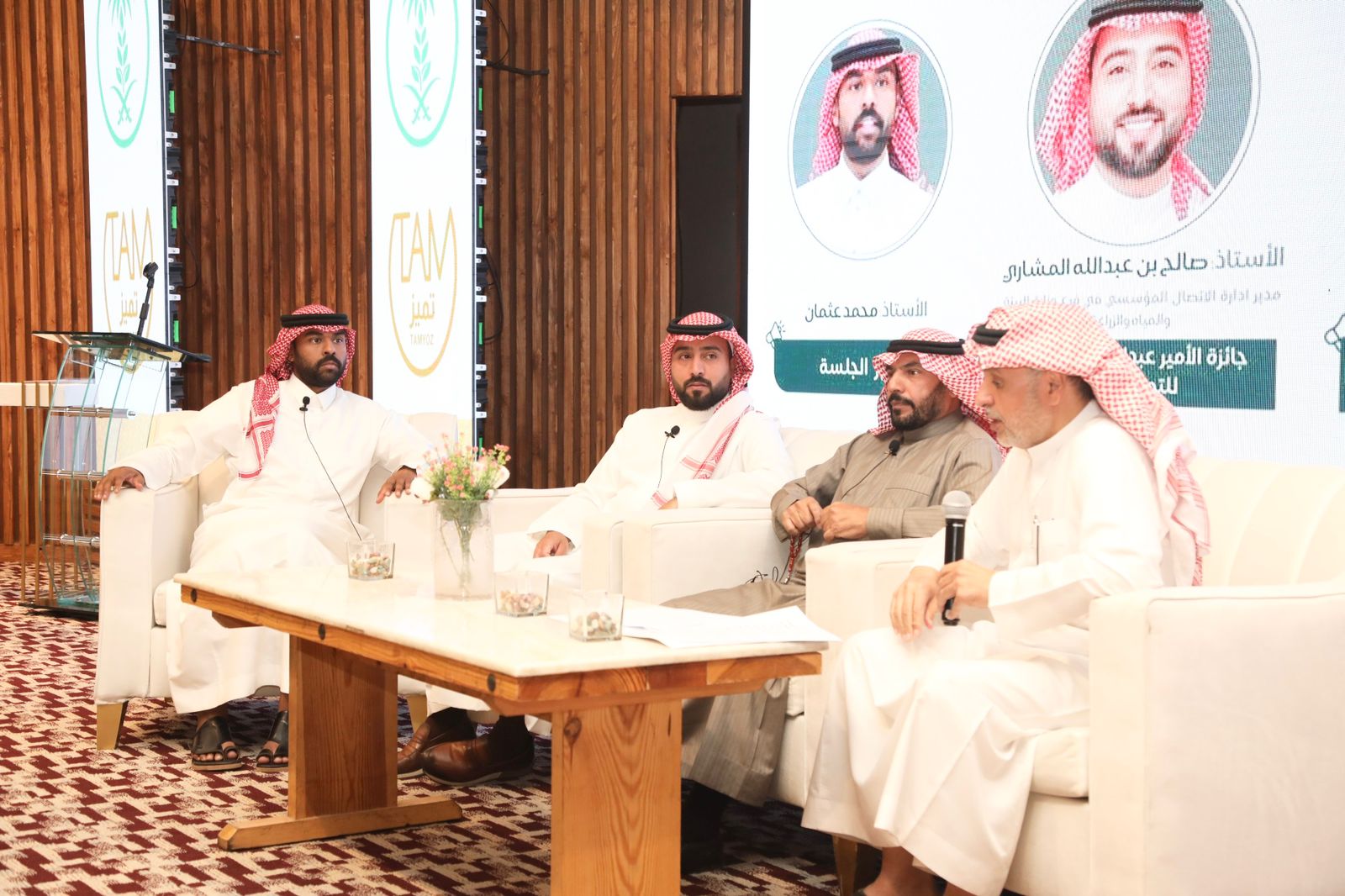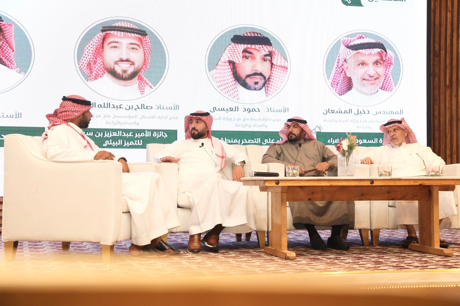 وافتتح الندوة مدير إدارة الإتصال المؤسسي في فرع وزارة البيئة والمياه والزراعة بالمنطقة الأستاذ صالح المشاري تحدث عن جائزة الأمير عبدالعزيز للتميز البيئي والتعريف فيها وفروعها الخمسة والهدف من إقامتها، وقال إن الجائزة هي الأولى من نوعها على مستوى المملكة، وقد حققت نجاحاً كبيراً في نسختها الأولى العام الماضي مبيناً أنها لاقت إقبال كبير في فروعها الخمسة العام الماضي حيث تجاوز المتقدمون عليها 100 شخص، وأضاف المشاري أن موعد انطلاق الجائزة لهذا العام سيتزامن مع يوم البيئة العالمي، والذي يصادف الخامس من يونيو المقبل، مشيراً أنها تهدف لتشجيع وتأصيل الممارسات البيئية السليمة وتحفيز المجتمع المحلي والإدارات والمؤسسات الحكومية والأهلية والأفراد، للاهتمام بمفهوم البيئة المستدامة، والتعريف بالجهود المتميزة والممارسات الناجحة في المجال البيئية.