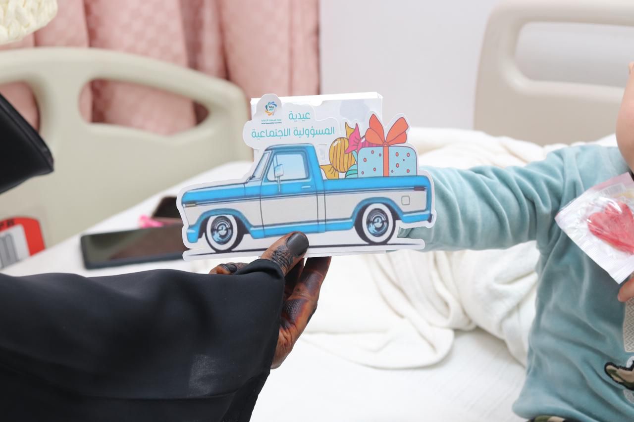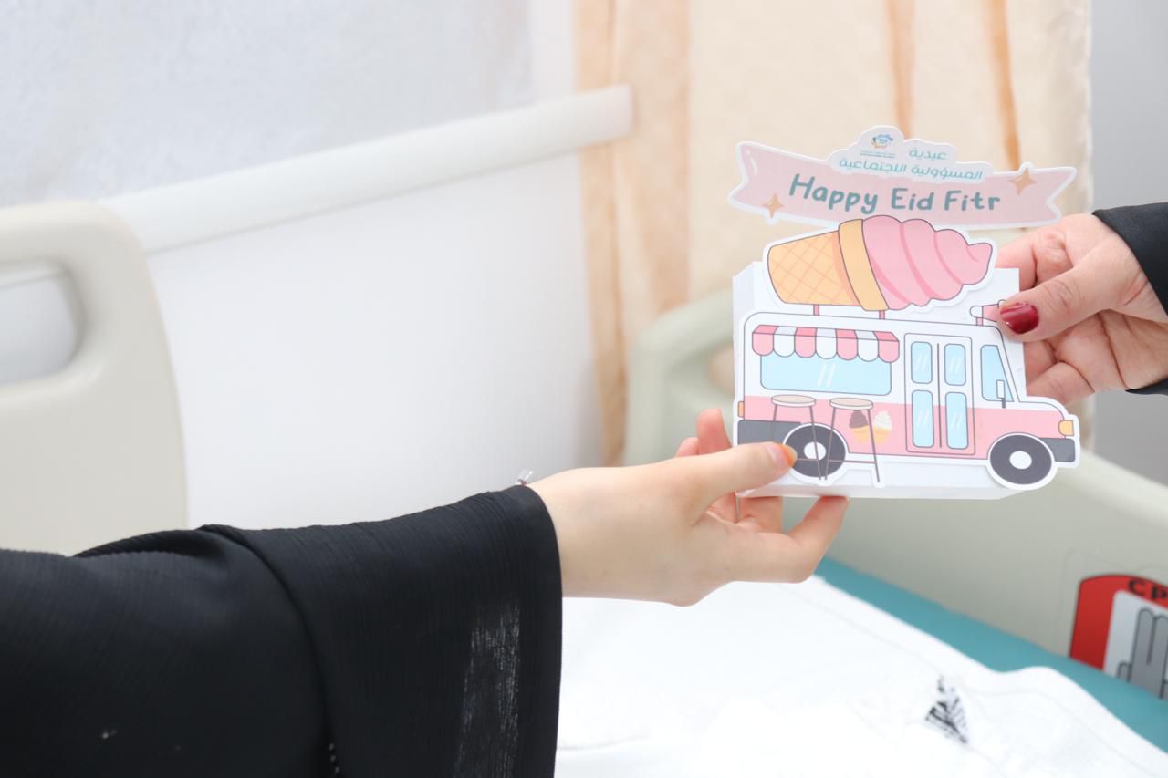 قام فرع وزارة الموارد البشرية والتنمية الاجتماعية بمنطقة الحدود الشمالية بالتعاون مع جمعية المسؤولية الاجتماعية ، بمعايدة الاطفال المنومين في مستشفى النساء والولادة والأطفال وتقديم التهنئة لهم بمناسبة عيد الفطر ومشاركتهم فرحة العيد اعادة الله على الجميع باليُمن والبركات