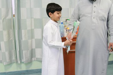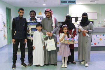 في إطار التعاون العام جمعية براعم لتنمية الطفل يزورون المنومين في مستشفى طريف العام احد مكونات تجمع الحدود الشمالية الصحي وادخال الفرحة والسرور عليهم تحت عنوان فرحة طفل .