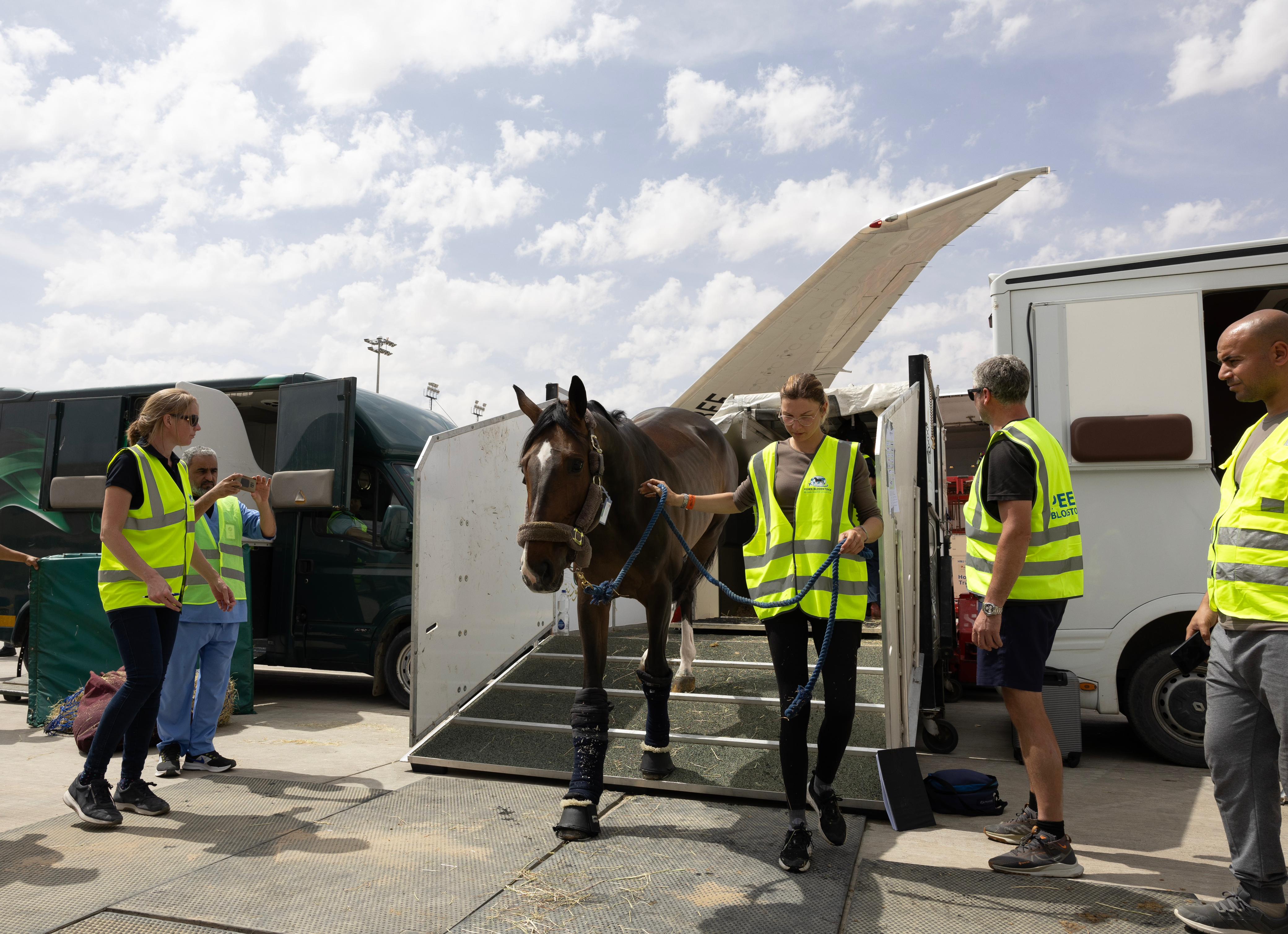استقبل مطار الملك خالد الدولي في الرياض، وعلى مدى يومين، عدد ٦٠ جواداً قادمة من مدينة لييج في بلجيكا استعداداً للمشاركة في بطولة كأس العالم لقفز الحواجز والترويض عام 2024 التي تنطلق احداثها الثلاثاء المقبل ولمدة أربعة أيام.
