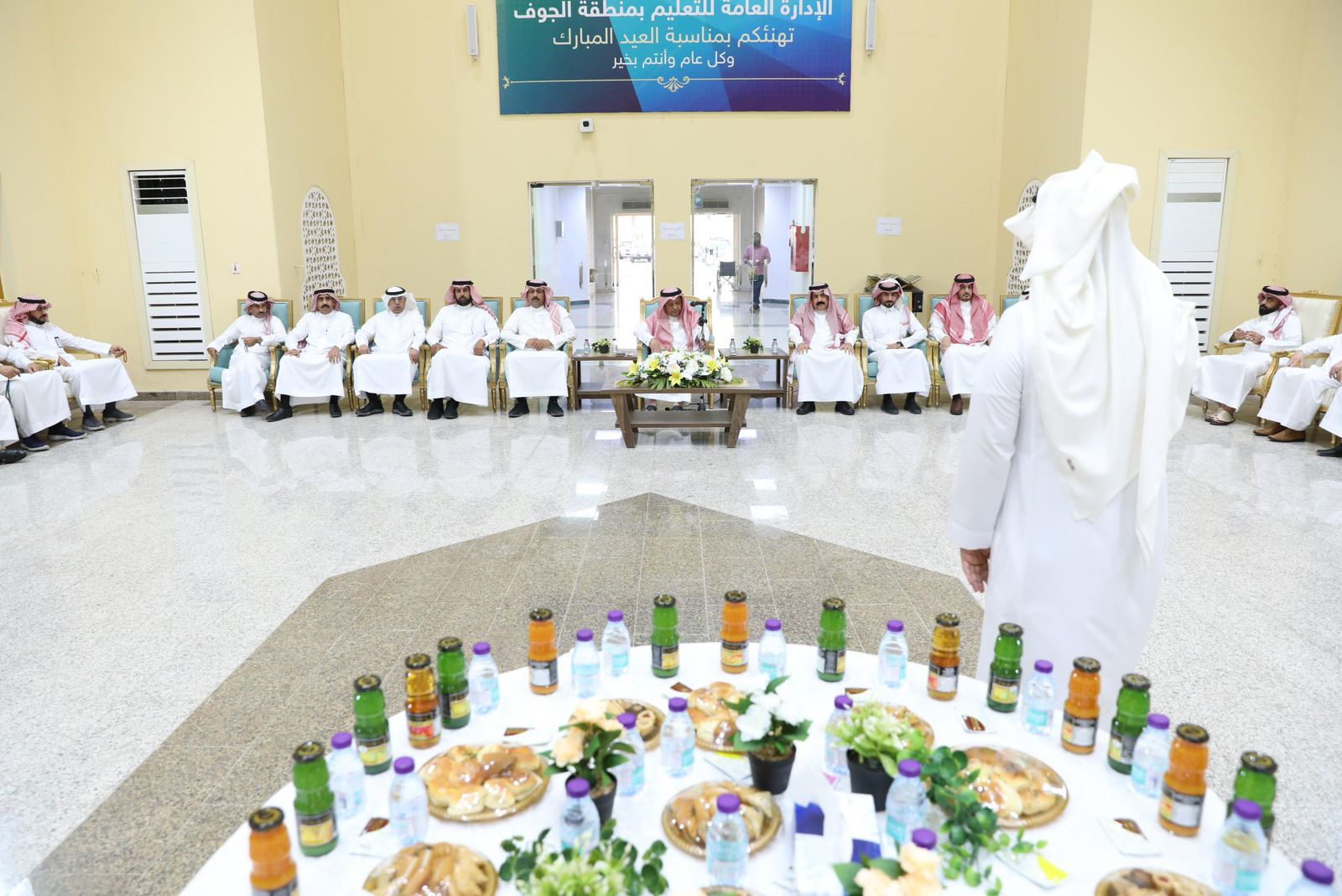 حيث التقى المدير العام للتعليم بمنطقة الجوف الأستاذ محمد بن علي القحطاني، مع المساعدين ومديري الإدارات والأقسام والموظفين وتبادلوا التهاني في جو سادته الألفة والمودة، وتناول الجميع المرطبات والحلويات في حفل بهيج.