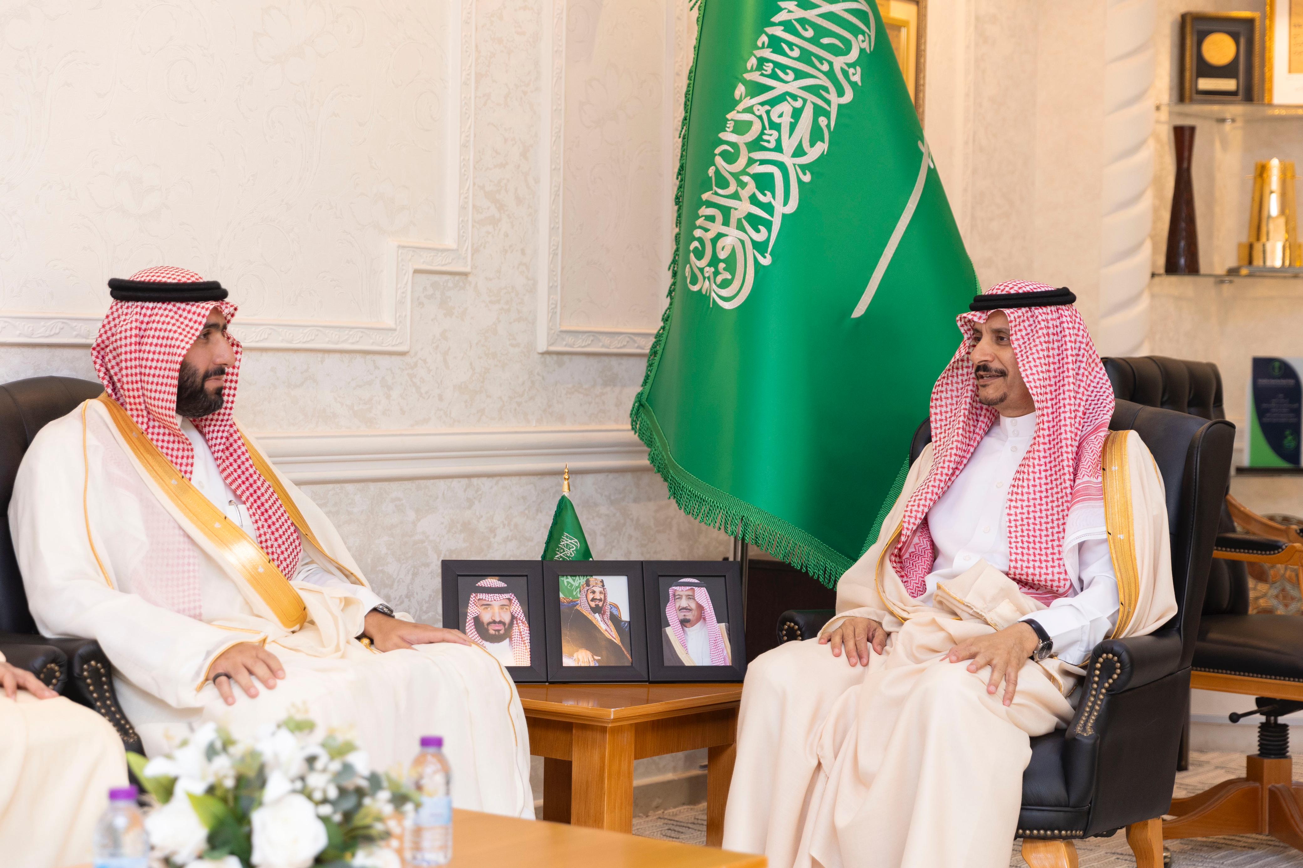 استقبل صاحب السمو الأمير عبدالرحمن بن عبدالله بن فيصل، محافظ حفرالباطن ، في مكتبه بمقر المحافظة، اليوم، الرئيس التنفيذي لنادي الصقور السعودي طلال بن عبدالعزيز الشميسي، بحضور امين محافظة حفرالباطن المهندس خلف العتيبي .