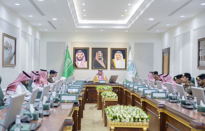 رأس صاحب السمو الملكي الأمير فيصل بن خالد بن سلطان بن عبدالعزيز أمير منطقة الحدود الشمالية، اليوم، الاجتماع الأمني لمتابعة الأعمال بمنفذ جديدة عرعر.