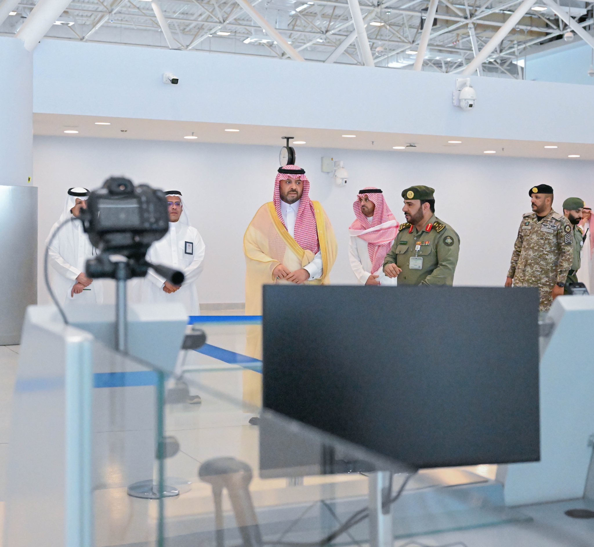 تفقد صاحب السمو الملكي الأمير فيصل بن خالد بن سلطان بن عبد العزيز أمير منطقة الحدود الشمالية , اليوم، صالة السفر الدولية بمطار عرعر ، وما تقدمه من خدمات للمسافرين ، واستمع لشرح عن سير الاستعدادات لإنهاء إجراءات السفر الدولية من قبل مديرعام الجوازات بالمنطقة العميد حسين التيماني .