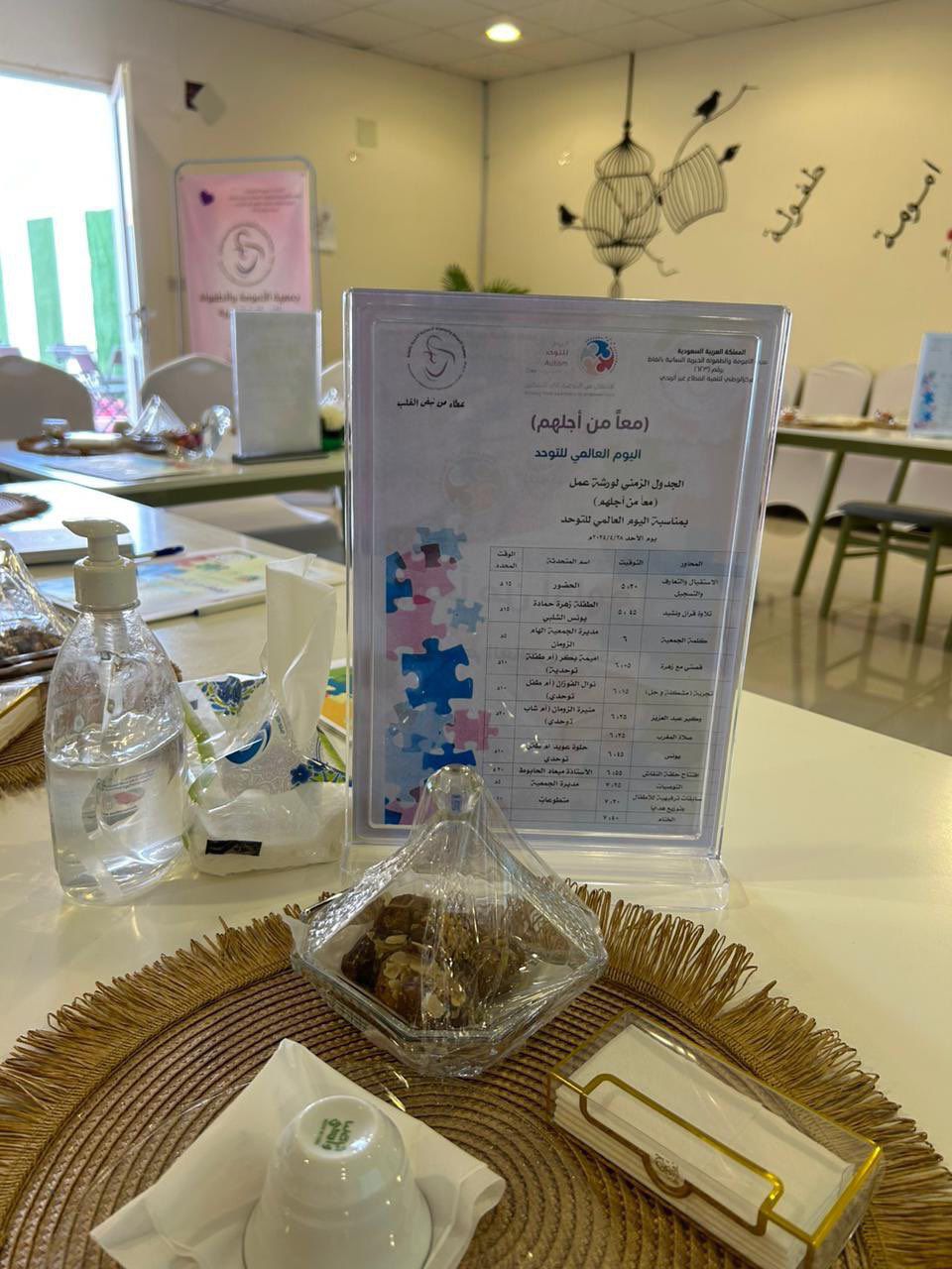 أقامت الجمعية ورشة عمل بعنوان ( معاً من أجلهم ) ،بمناسبة اليوم العالمي للتوحد والذي يصادف 2 أبريل من كل عام ،وذلك بمشاركة عدد من الأخصائيات و عدد من أمهات أطفال التوحد ،حيث تضمنت الورشة استعراض لتجارب أمهات التوحد والتحديات التي واجهتهم وكيفية التغلب عليها ،تلا ذلك مناقشات و مداخلات و طرح توصيات لدعم أسر ذوي التوحد في المحافظة.