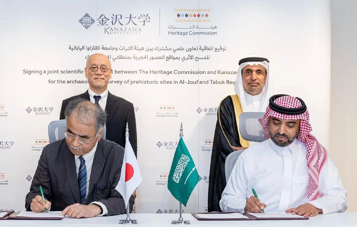 وقّعت هيئة التراث اليوم اتفاقية تعاون علمي مشترك مع جامعة كانازاوا اليابانية لأعمال المسح الأثري لمواقع عصور ما قبل التاريخ بمنطقتي الجوف وتبوك.