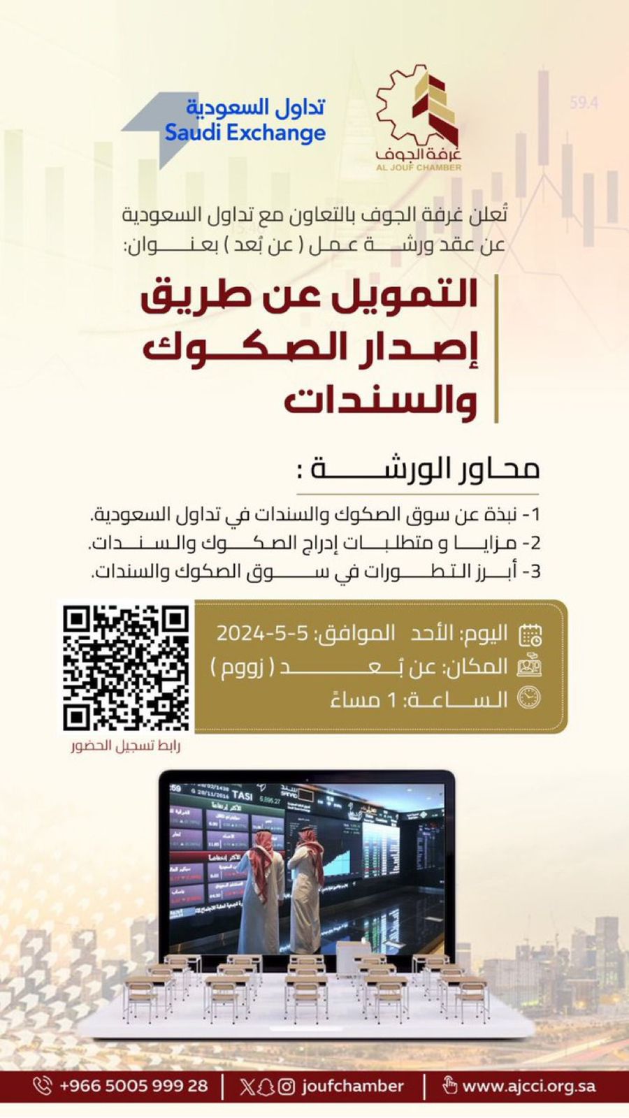 تنظم غرفة الجوف بالتعاون مع تداول السعودية ورش عمل عن بعد حول التمويل عن طريق إصدار الصكوك والسندات