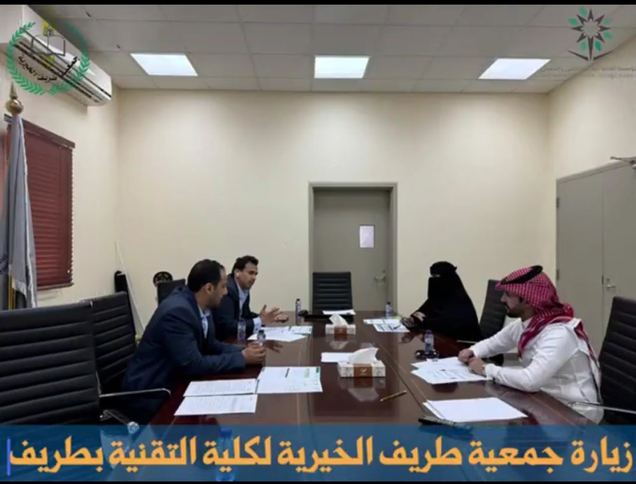 استقبل عميد الكلية المهندس جبران الجابري ممثلي الجمعية الخيرية بطريف الأستاذه عبير عياد المدير التنفيذي للجمعية والاستاذ /جاسر الطرفاوي _العلاقات العامة للجمعية.