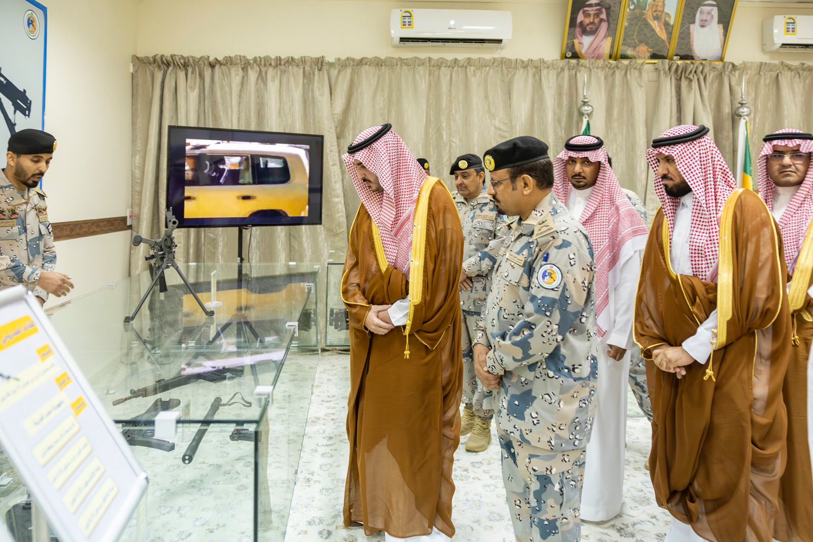 واطّلع سموّه خلال زيارته على معرض قيادة حرس الحدود بالمنطقة بين الحاضر والماضي، والمعرض المصاحب والخاص بعرض الأسلحة الحديثة والأنظمة الحرارية، منوهًا بما يحظى به قطاع حرس الحدود من دعم ورعاية من القيادة الرشيدة – أيدها الله – ومتابعة صاحب السمو الملكي الأمير عبدالعزيز بن سعود بن نايف بن عبدالعزيز وزير الداخلية.