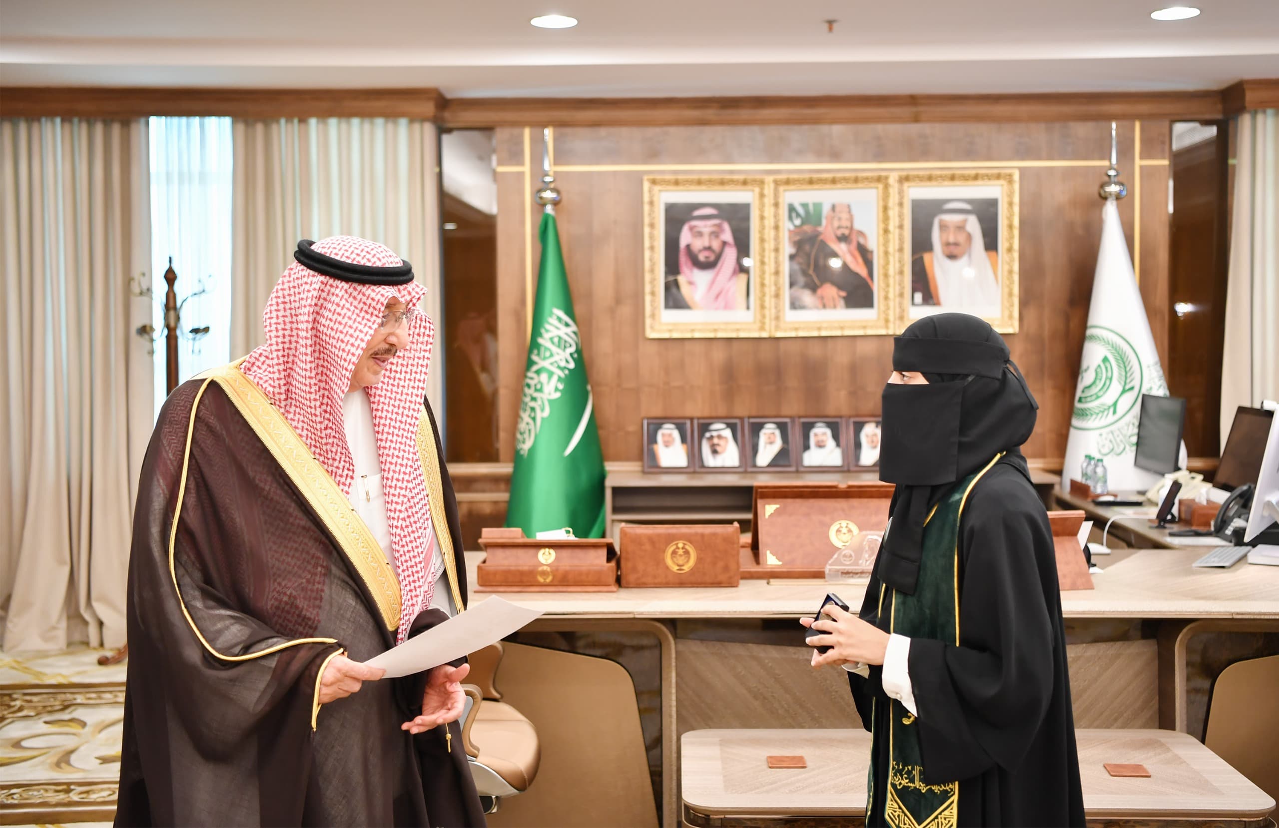 جاء ذلك خلال استقباله في مكتبه بالإمارة اليوم، مدير التعليم بمنطقة جازان ملهي بن حسن عقدي والطالبة القيسي، وعددًا من منسوبي التعليم بالمنطقة.
