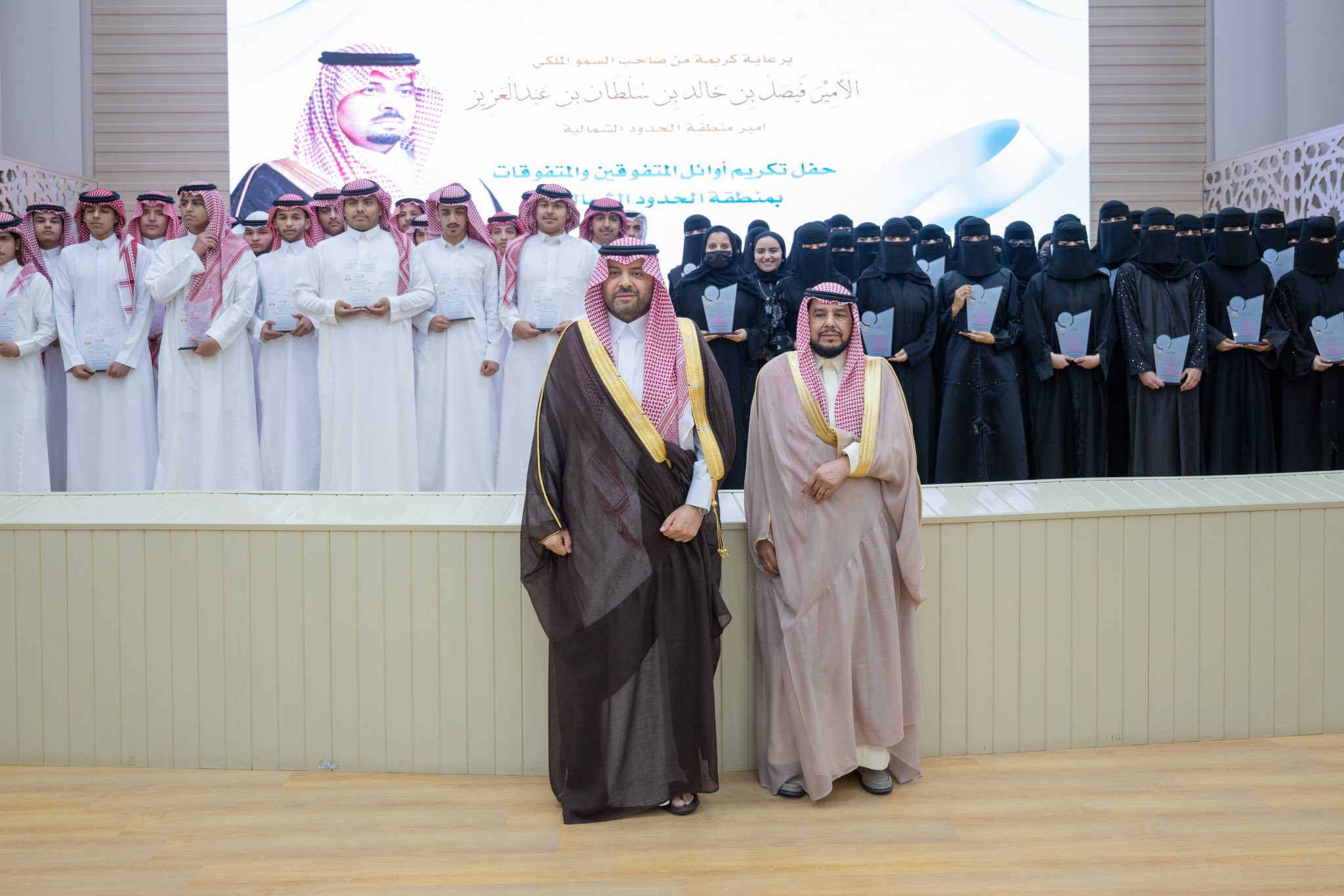 كرَّم صاحب السمو الملكي الأمير فيصل بن خالد بن سلطان بن عبدالعزيز أمير منطقة الحدود الشمالية اليوم، 220 من أوائل الطلاب والطالبات المتفوقين في تعليم المنطقة خلال العام الدراسي وذلك على مسرح الإدارة العامة للتعليم بمدينة عرعر.