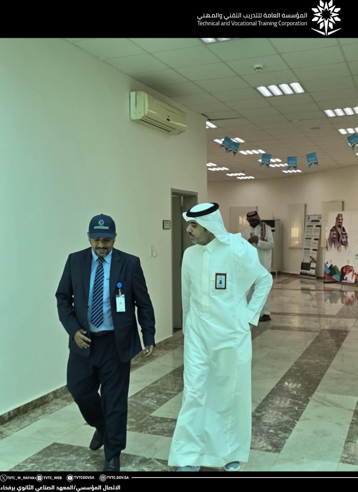 زار مدير عام الإدارة العامة للتدريب التقني والمهني بمنطقة الحدود الشمالية م/ حسن السليم ، المعهد الصناعي الثانوي برفحاء واطلع على سير الاختبارات النهائية ، وقام بجولة داخل المنشأة التدريبية.