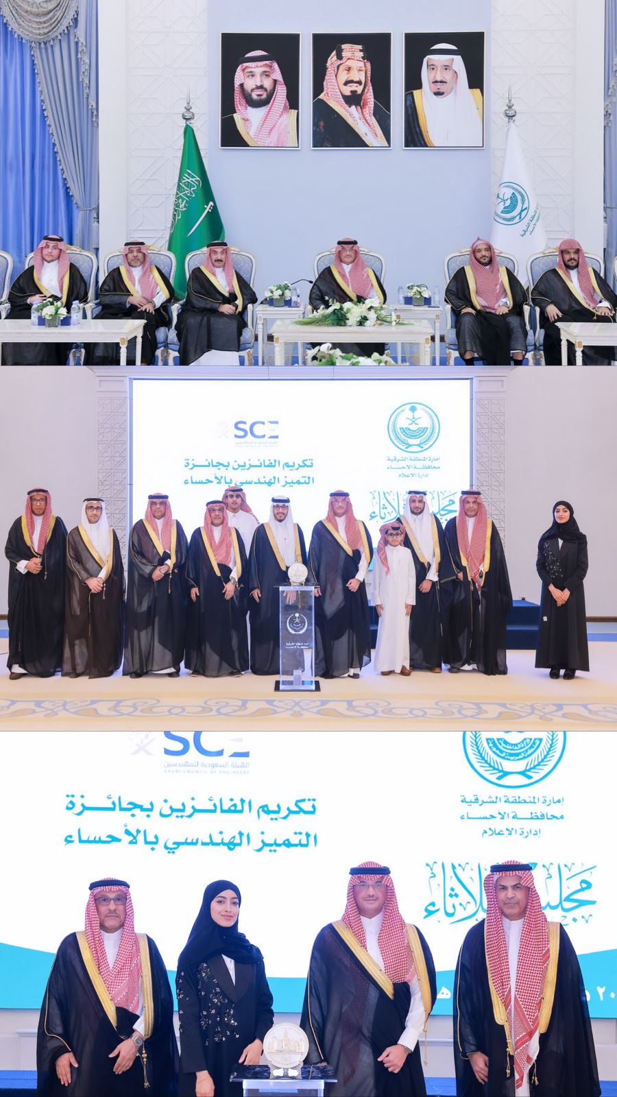 وفي ختام اللقاء، كرّم سمو محافظ الأحساء الفائزين بجائزة التميز الهندسي في محافظة الأحساء التي رعاها سموه ونظمتها الهيئة السعودية للمهندسين، وتنافس فيها المهندسون والمهندسات وطلاب وطالبات كليات الهندسة، إضافة إلى بعض القطاعات الحكومية والخاصة في محافظة الأحساء، من خلال مسابقة في المشروعات والتصاميم والدراسات الهندسية والتعليم الهندسي والإدارة الهندسية والسجل الأكاديمي وما له علاقة بالتميز في المجال المهني..
