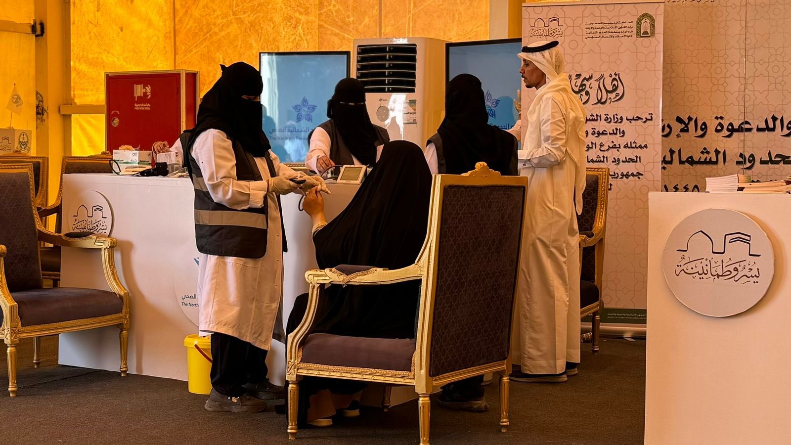 يواصل أبطال التطوع الصحي بتجمع الحدود الشمالية الصحى تقديم الخدمات لضيوف الرحمن في منفذ جديدة عرعر البري .