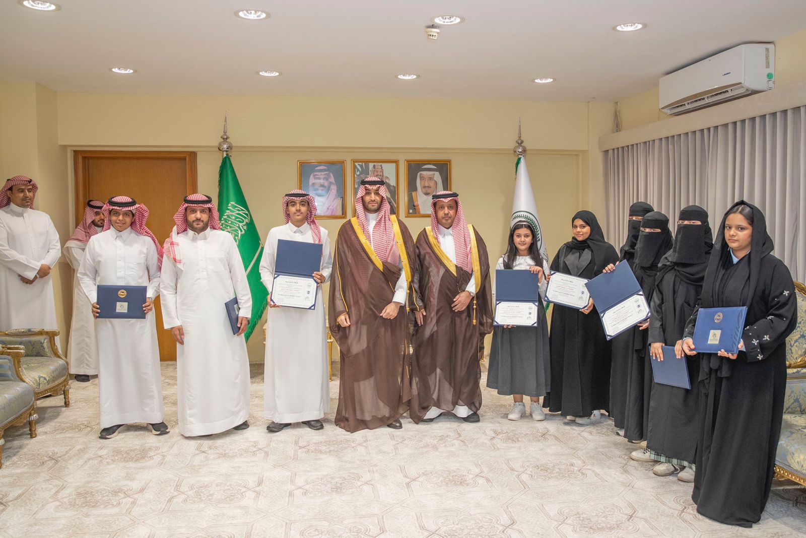 نيابةً عن صاحب السمو الملكي الأمير فيصل بن نواف بن عبدالعزيز أمير منطقة الجوف، كرّم صاحب السموّ الملكيّ الأمير متعب بن مشعل بن بدر بن سعود بن عبدالعزيز نائب أمير منطقة الجوف في مكتبه اليوم، الفائزين والفائزات بجائزة "المواطنة المسؤولة"، التي ترعاها مؤسسة جائزة الأميرة صيتة بنت عبدالعزيز للتميز في العمل الاجتماعي من تعليم المنطقة، يرافقهم أولياء أمورهم.