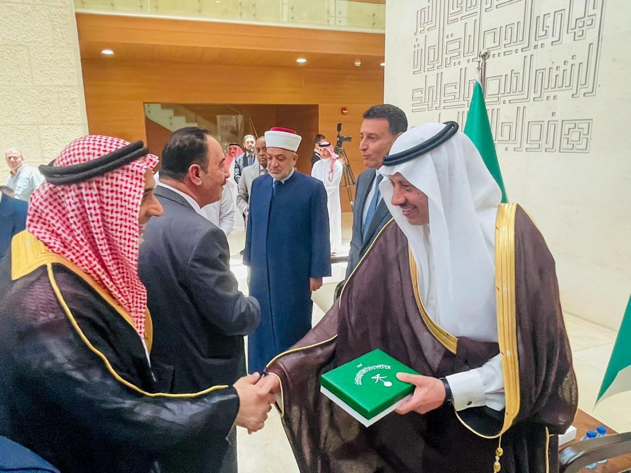 ودع سفير خادم الحرمين الشريفين لدى الأردن نايف بن بندر السديري في السفارة اليوم، قافلة حجاج بيت الله الحرام ضمن برنامج ضيوف خادم الحرمين الشريفين الملك سلمان بن عبدالعزيز آل سعود- حفظه الله-، بحضور معالي وزير الاوقاف الاردني الدكتور محمد الخلايلة، وسعادة رئيس مجلس النواب الاردني أحمد الصفدي.