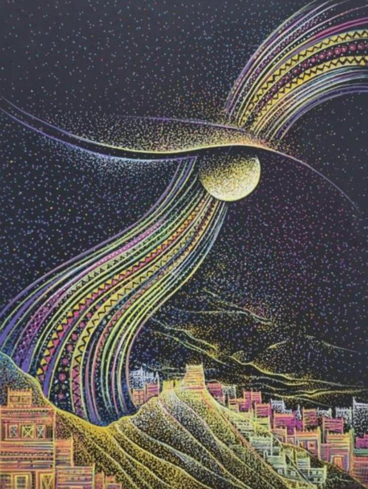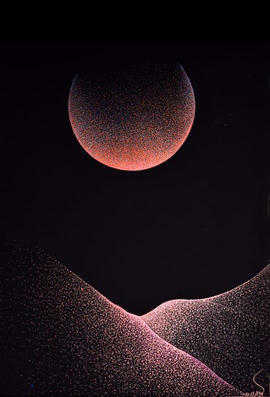 لقب بفنان المليار نقطة لاستطاعنه أن يرسم بريشته المشهد الجميل الذي ينطق من خلال انعكاس نور القمر على جمال الجبال الشاهقة