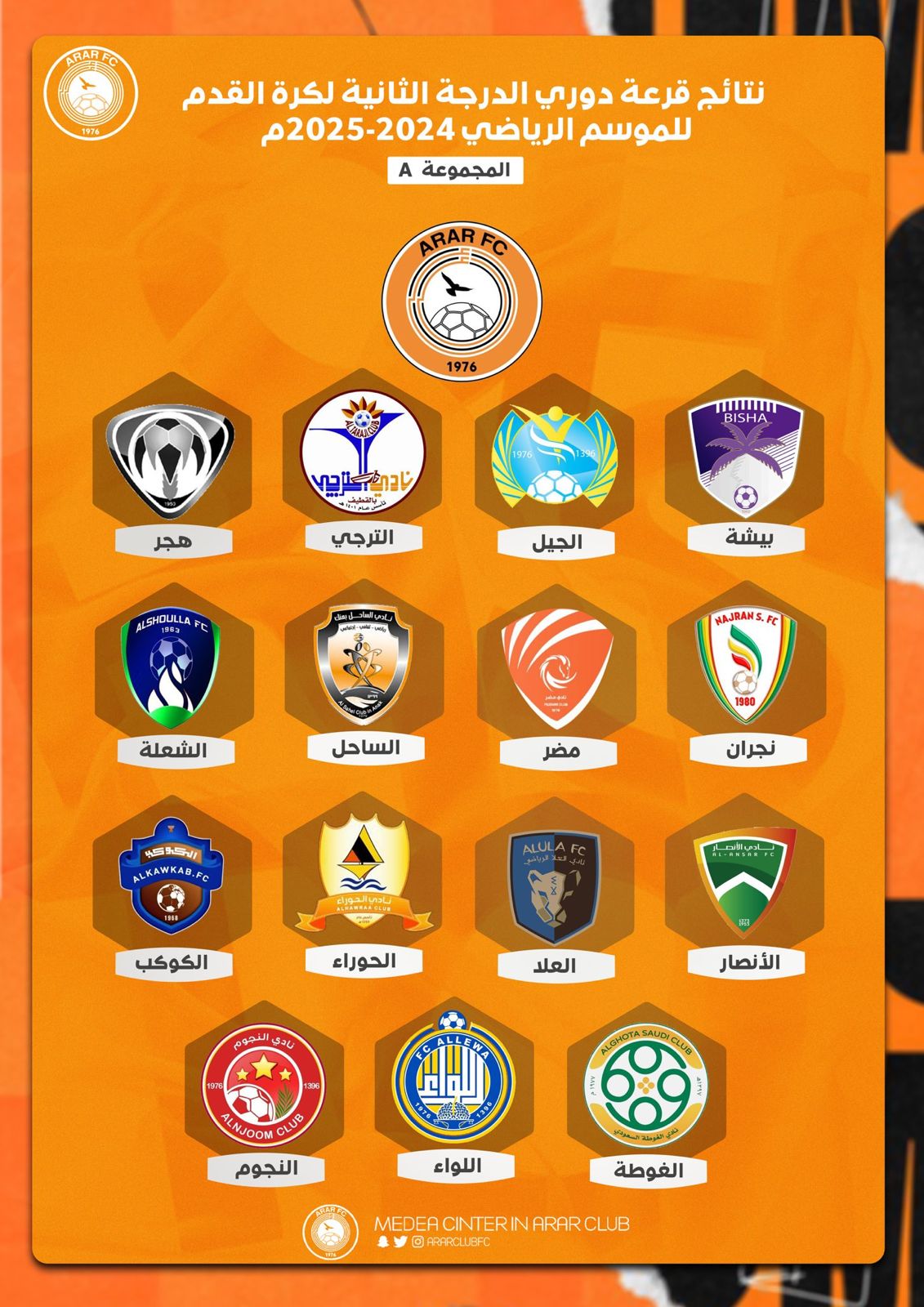 أجريت قرعة دوري الدرجة الثانية لكرة القدم للموسم الرياضي 24 - 2025 والتي أسفرت عن تواجد نادي عرعر في المجموعة الأولى "A"