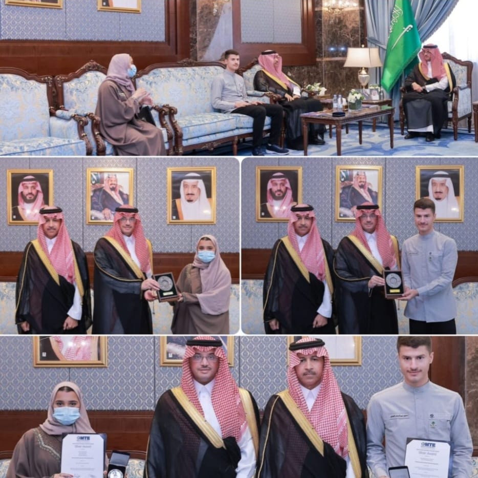 كرّم صاحب السمو الملكي الأمير سعود بن طلال بن بدر محافظ الأحساء، بمكتب سموّه بمقر المحافظة المتدربون الفائزون في مسابقة المعرض الدولي للاختراعات والابتكارات التقنية بحضور عميد الكلية التقنية بالأحساء، الأستاذ عبدالله بن موسى الذكر الله