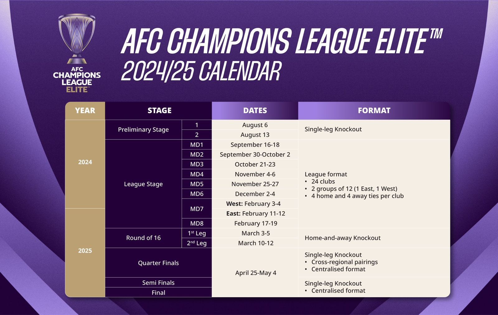 كما ان الاتحاد الآسيوي يعتمد رزنامت مباريات دوري أبطال آسيا للنخبة 2024/25