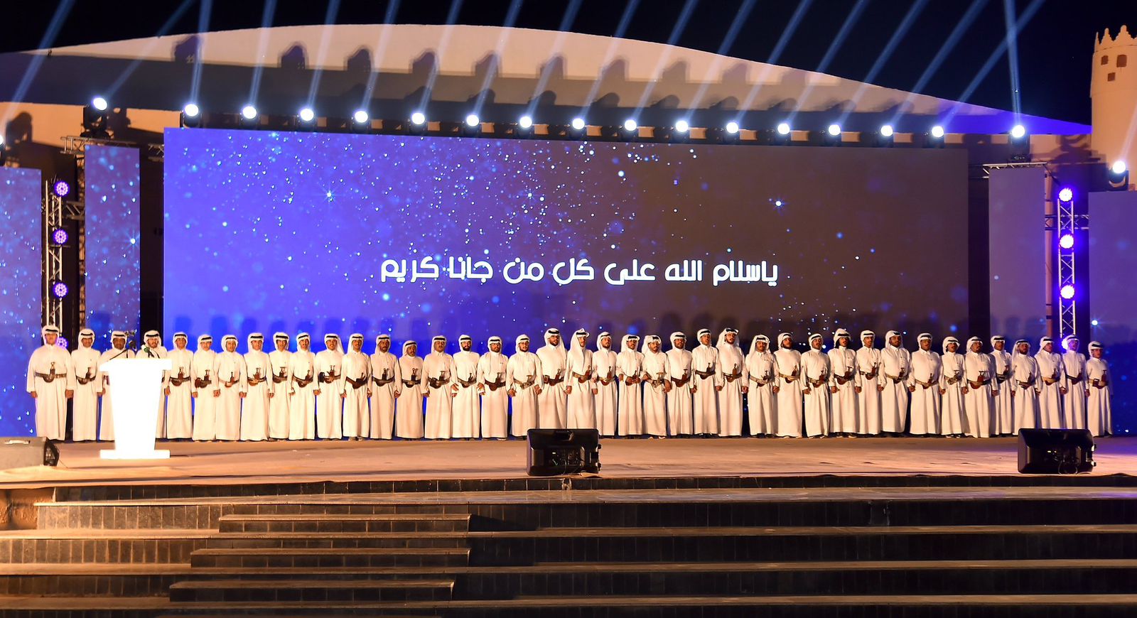 تلا ذلك أوبريت وطني بمشاركة الفرق الشعبية أدت خلاله ألواناً فلكلورية من التراث الشعبي الذي تشتهر به المنطقة.